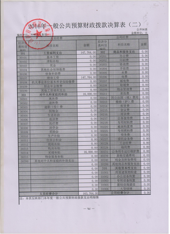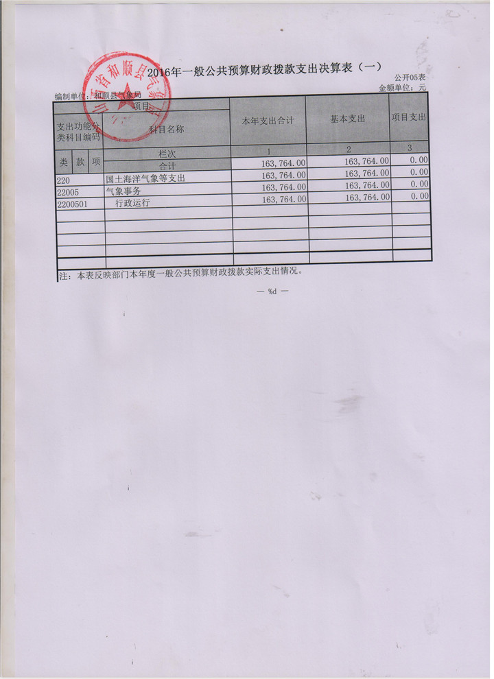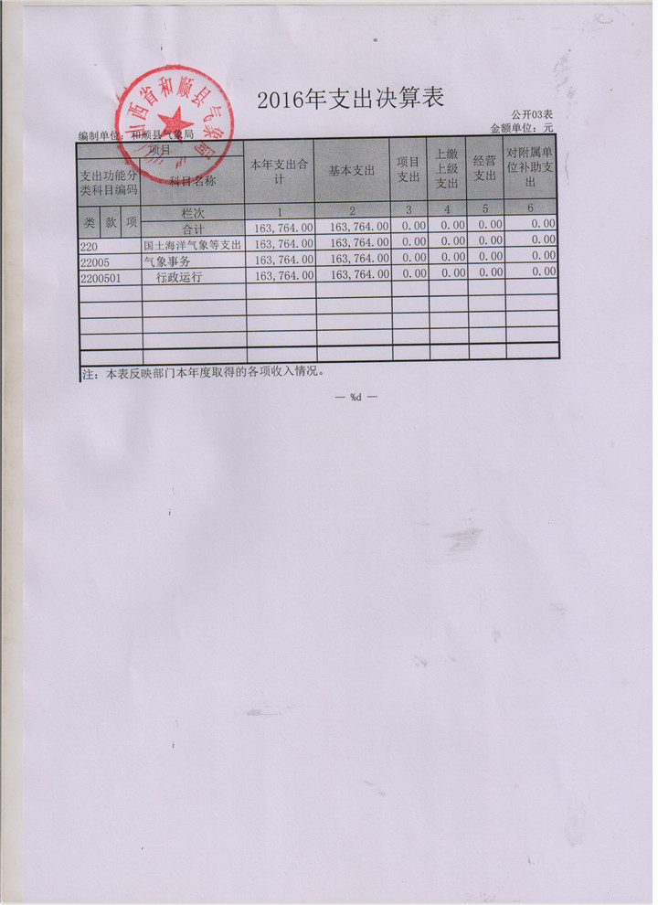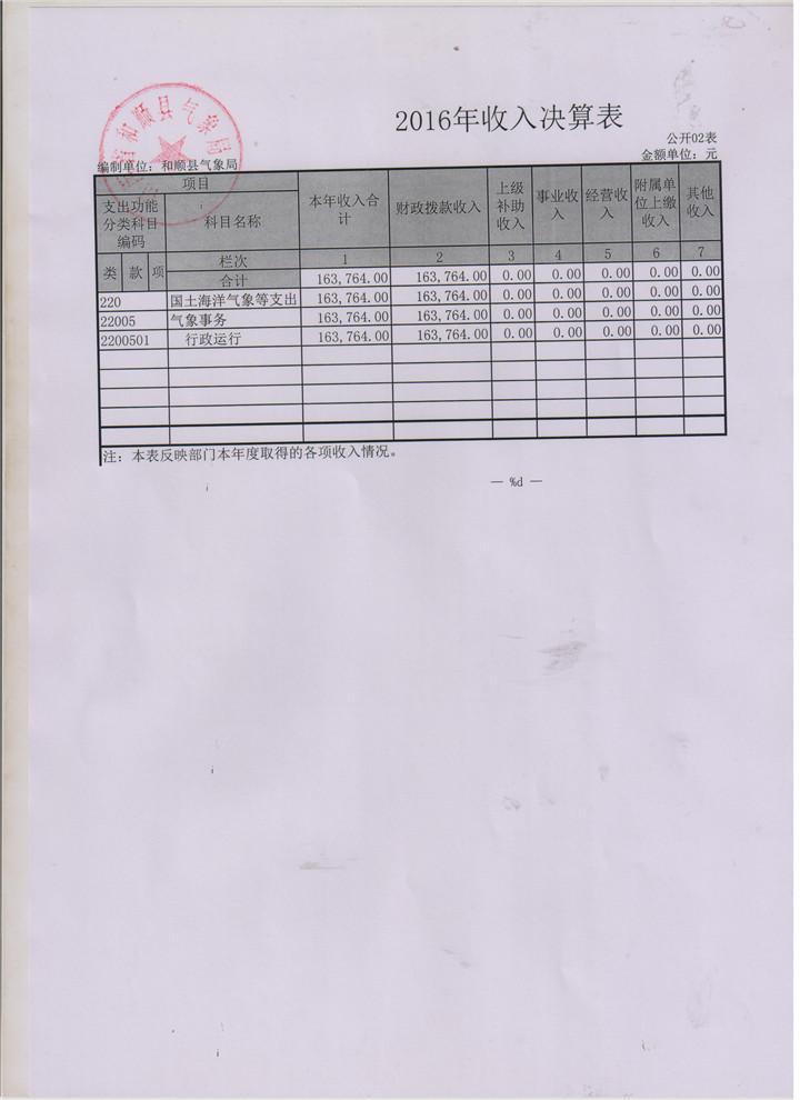 和顺县气象局2016决算公开