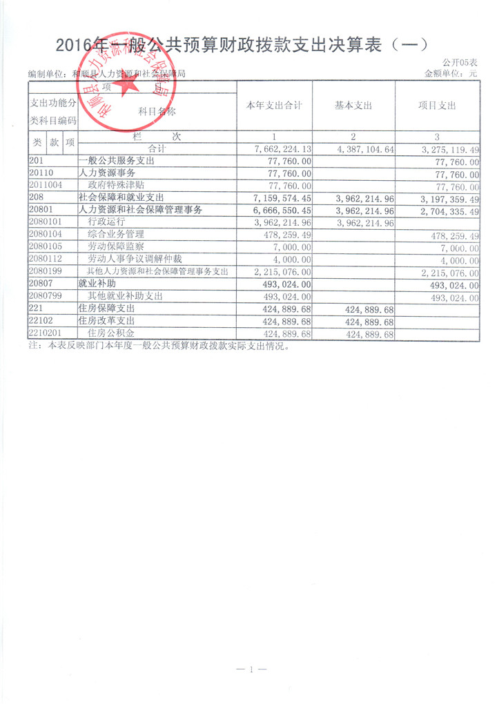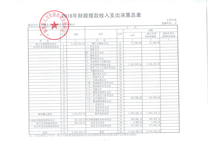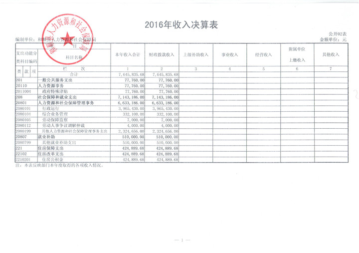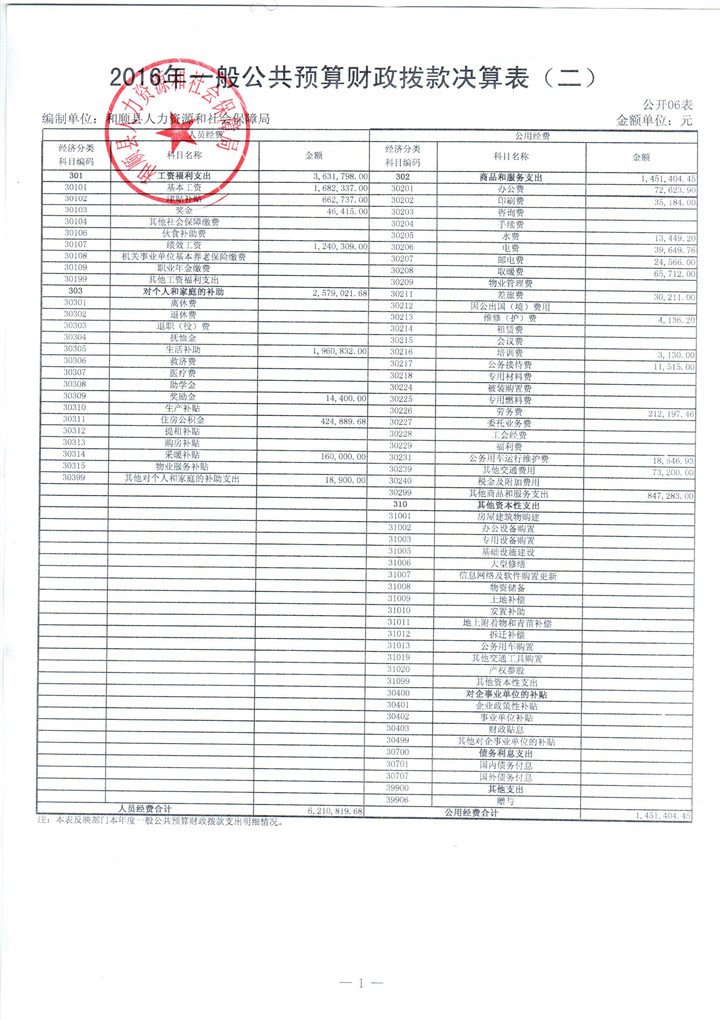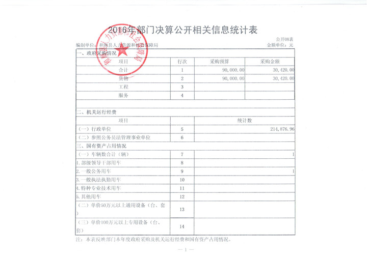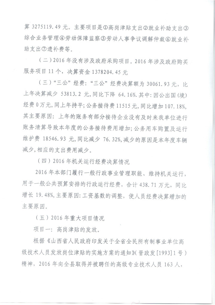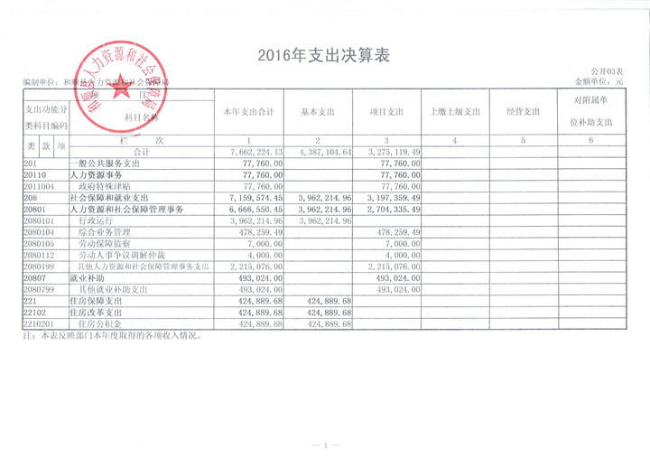 和顺县人社局2016年决算公开