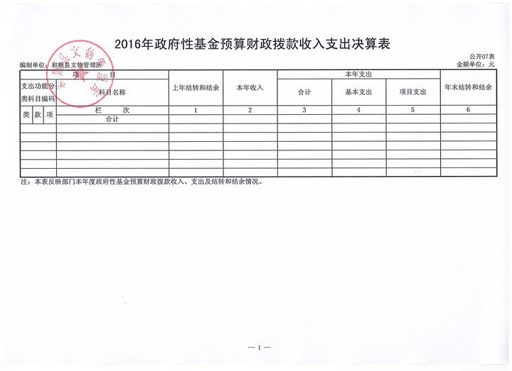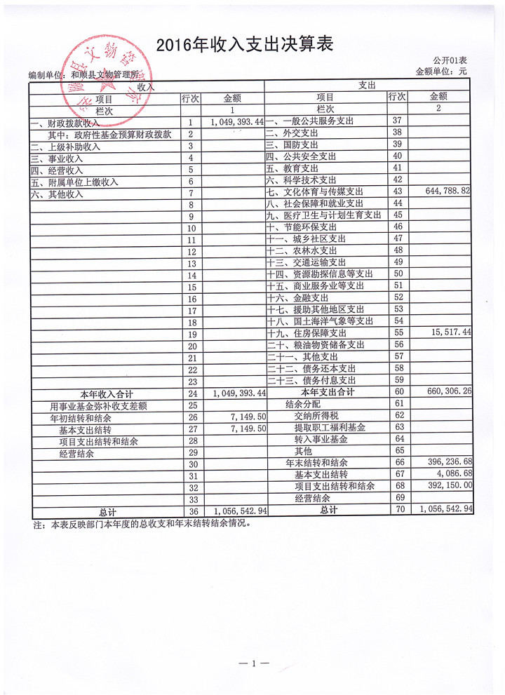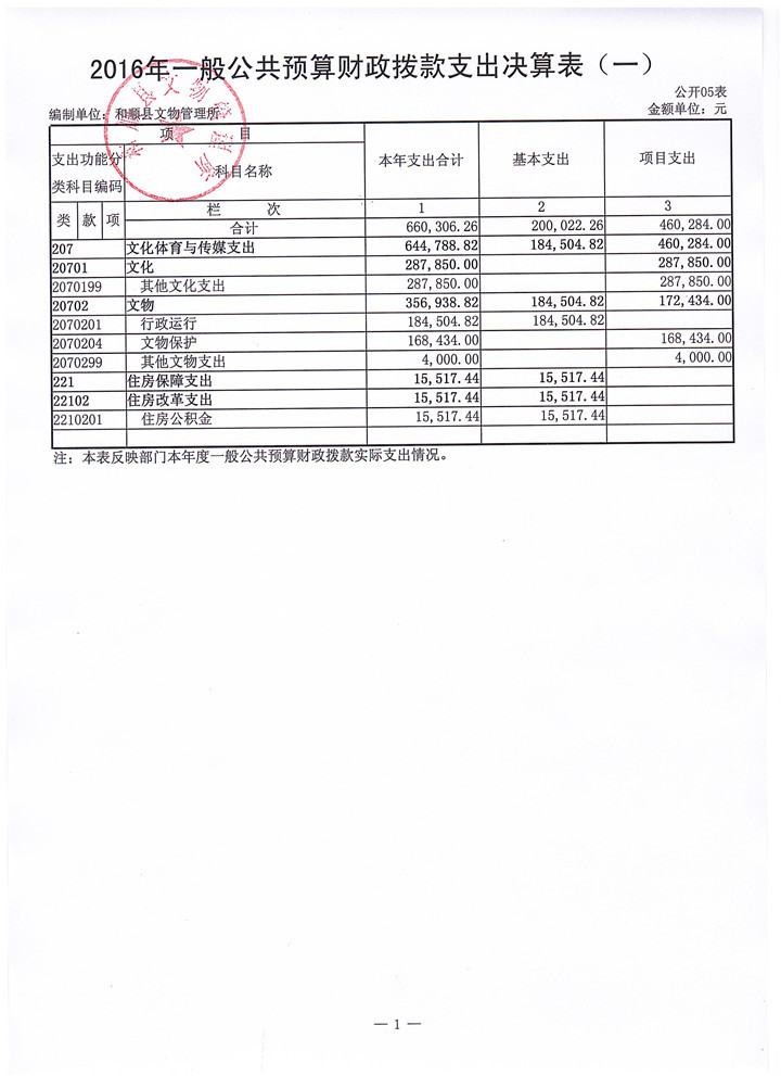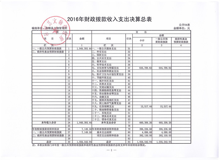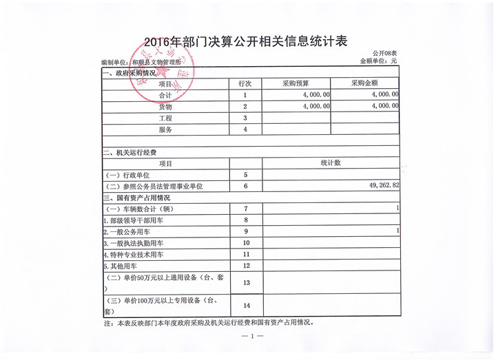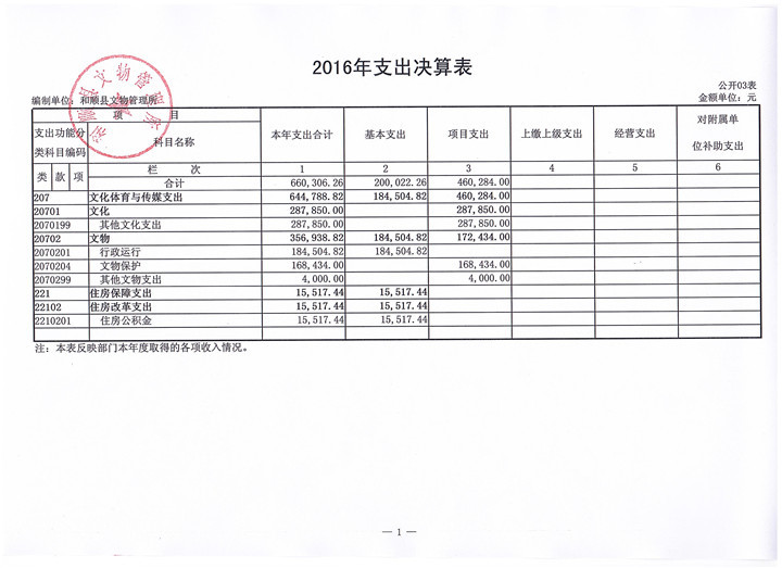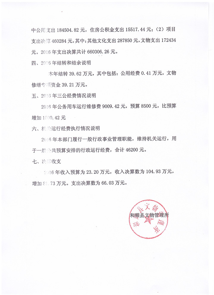 和顺县文物管理所决算公开