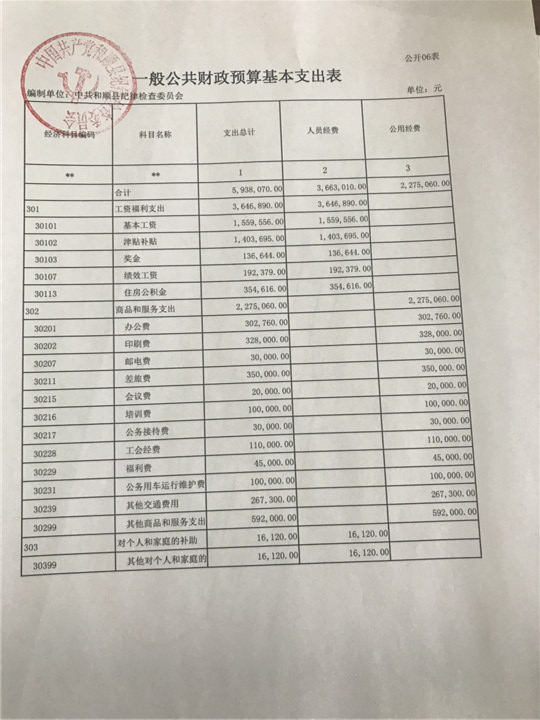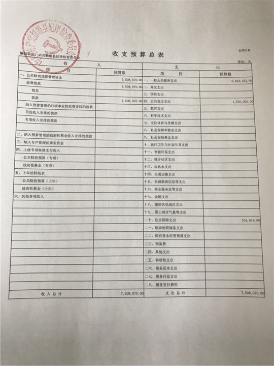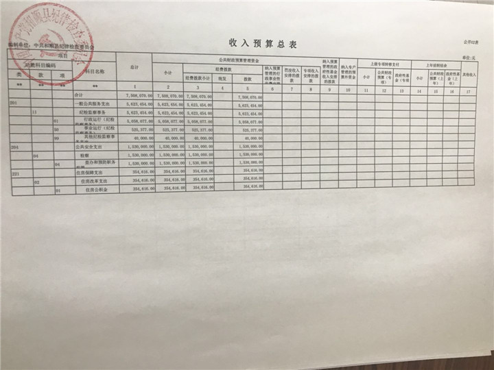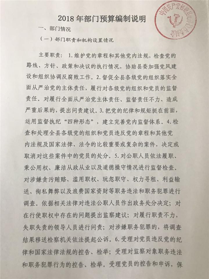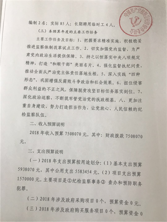 纪检委2018年预算公开