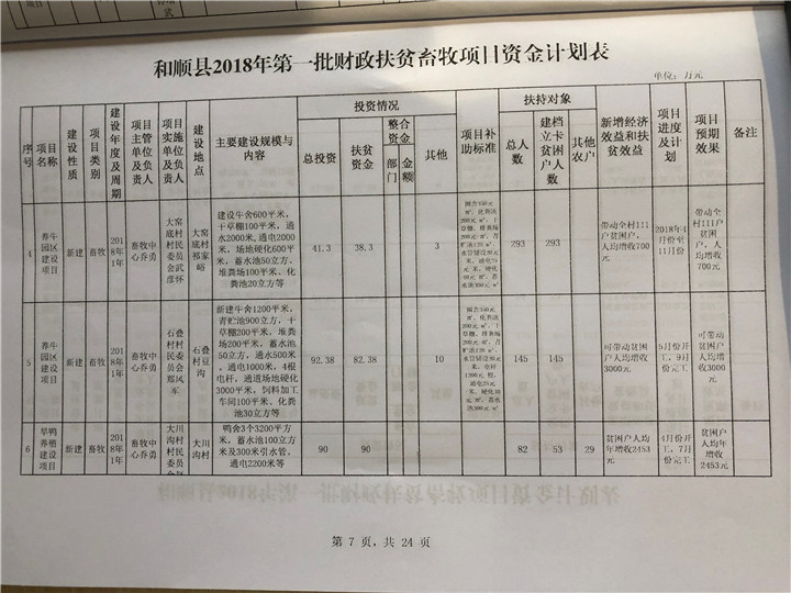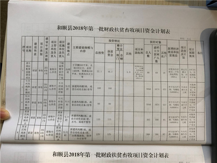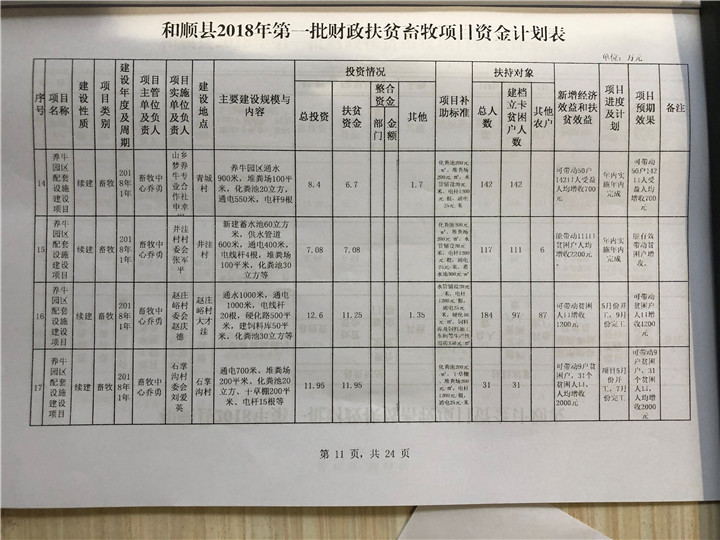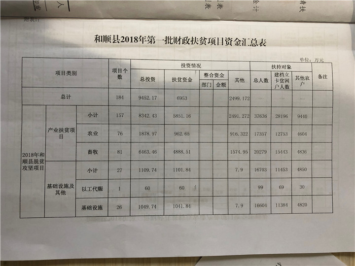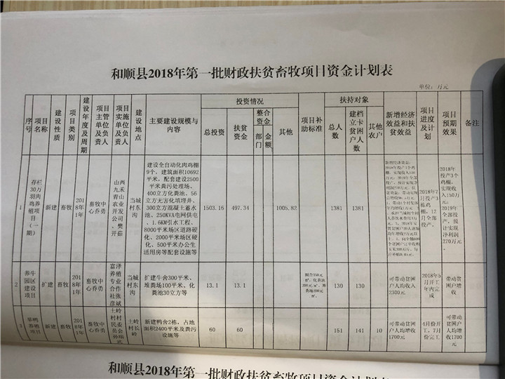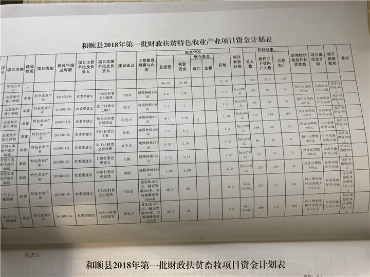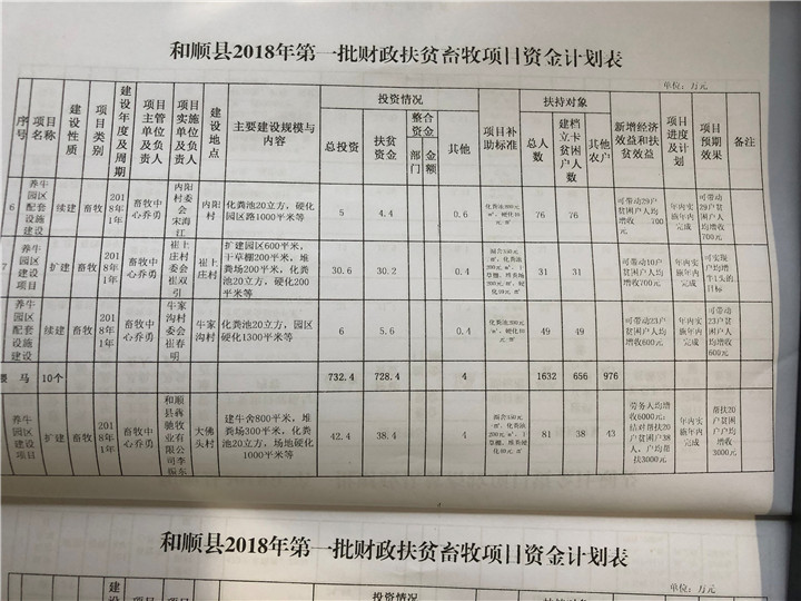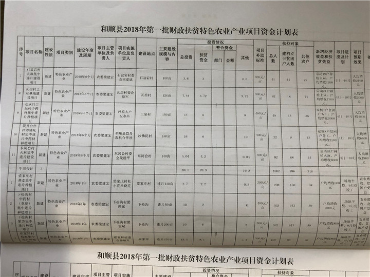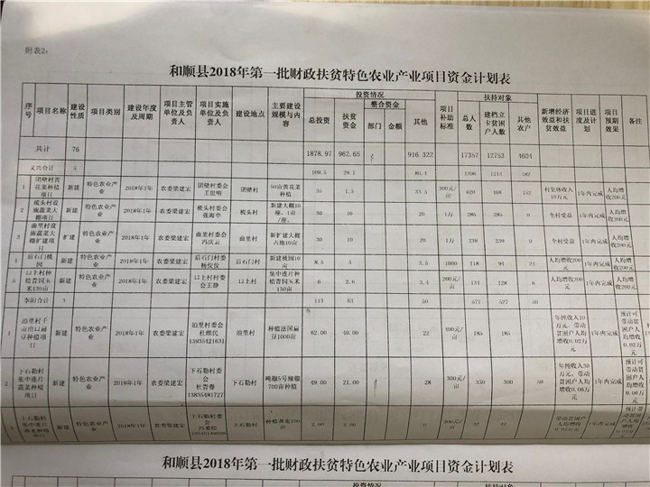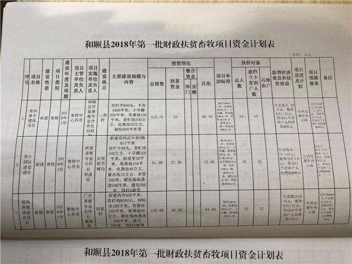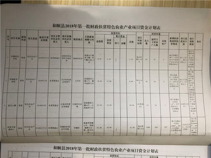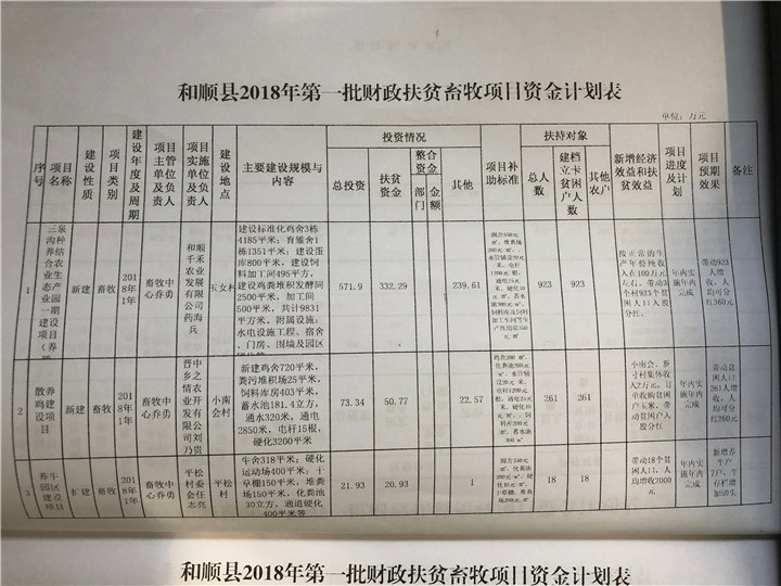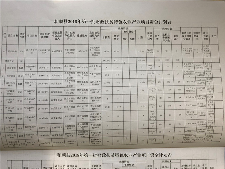 和顺县2018年脱贫攻坚第一批财政扶贫项目公开