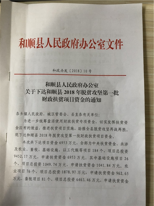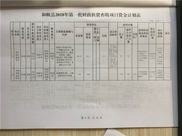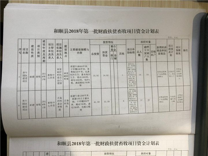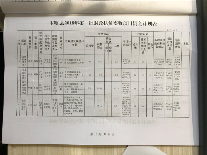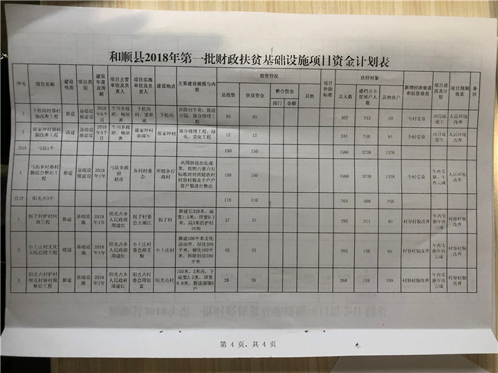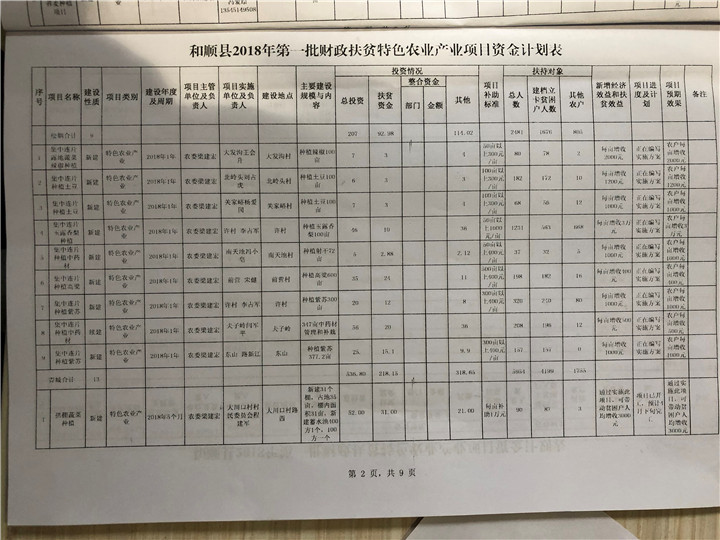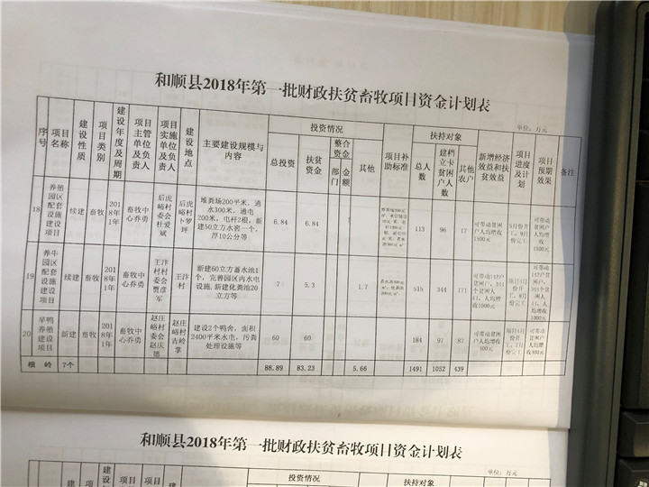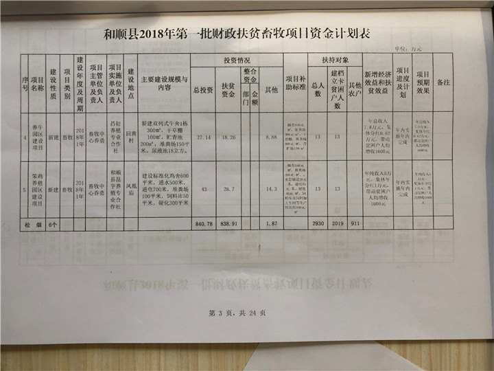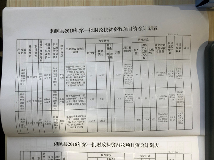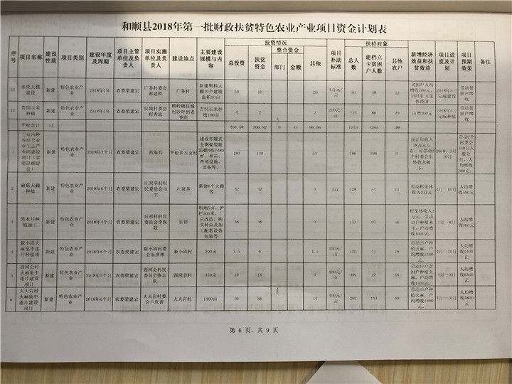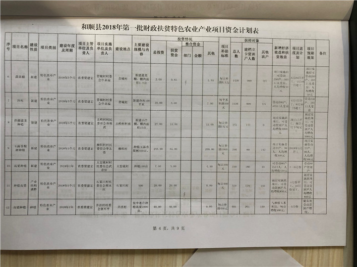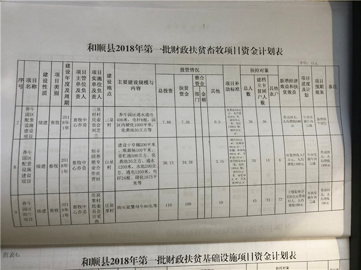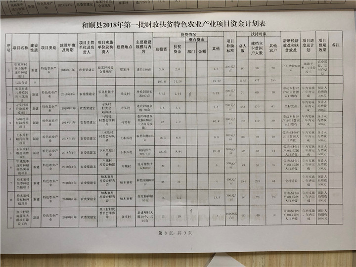 和顺县2018年脱贫攻坚第一批财政扶贫项目公开