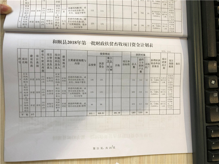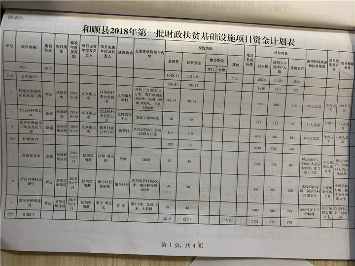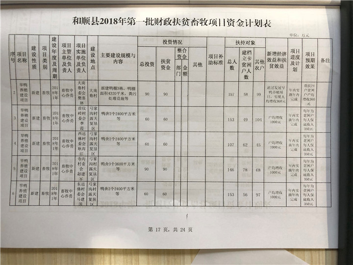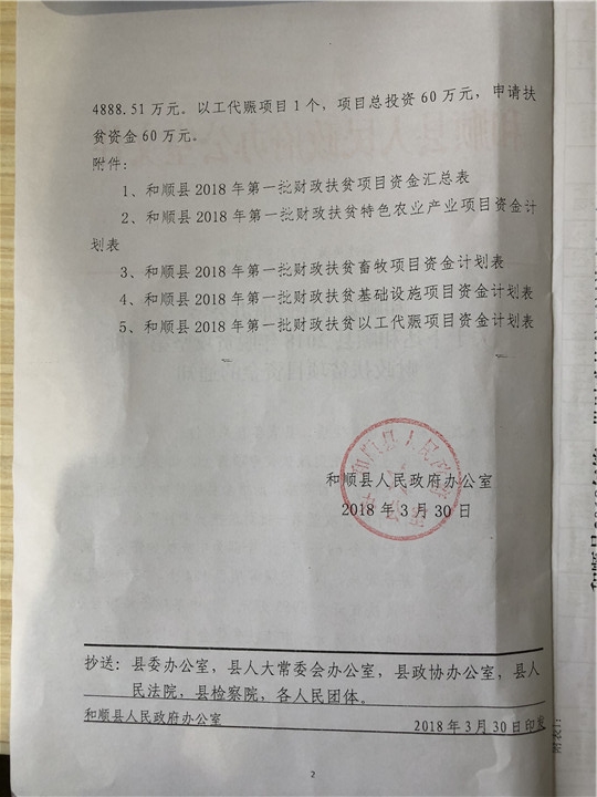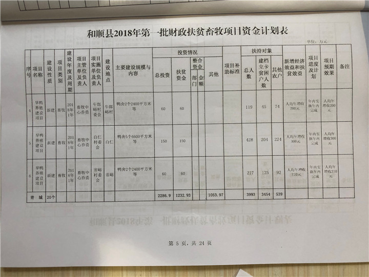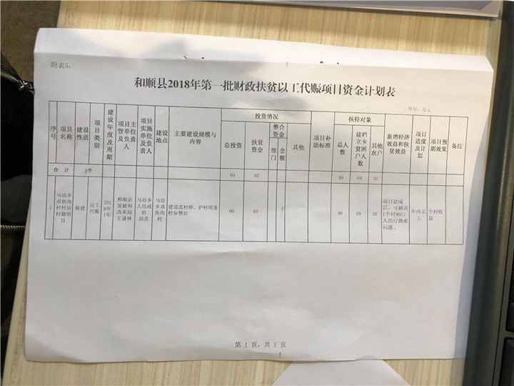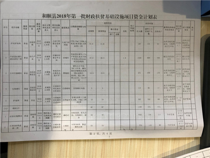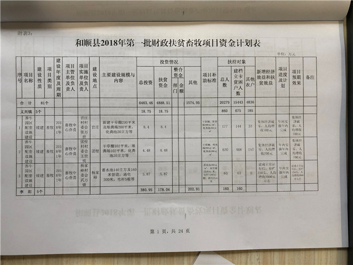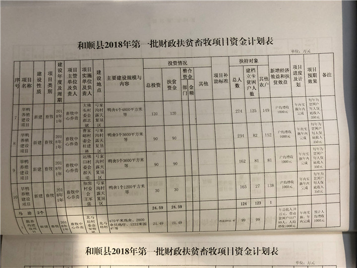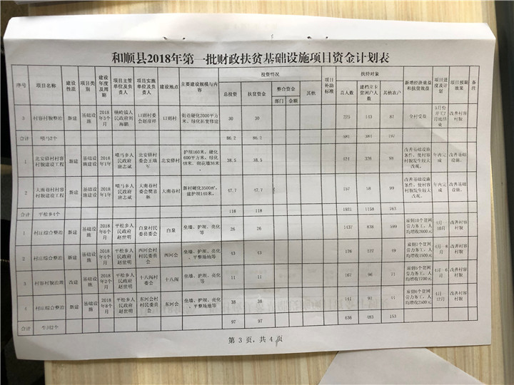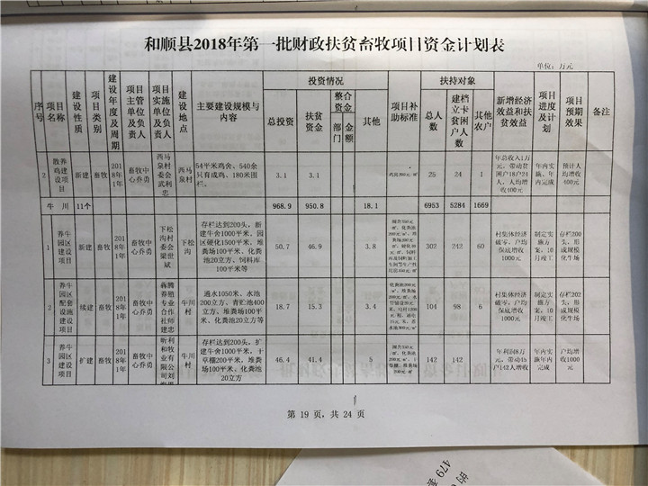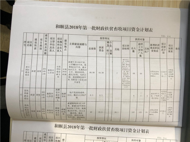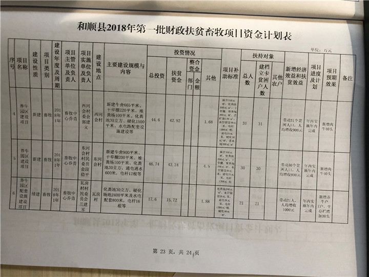 和顺县2018年脱贫攻坚第一批财政扶贫项目公开