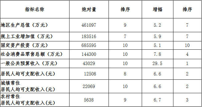 总体来看:全年主要经济指标完成情况及排序