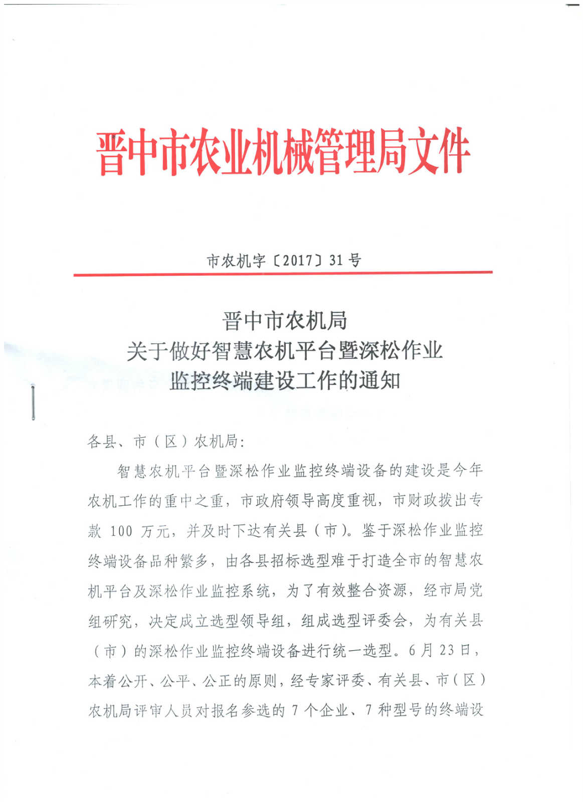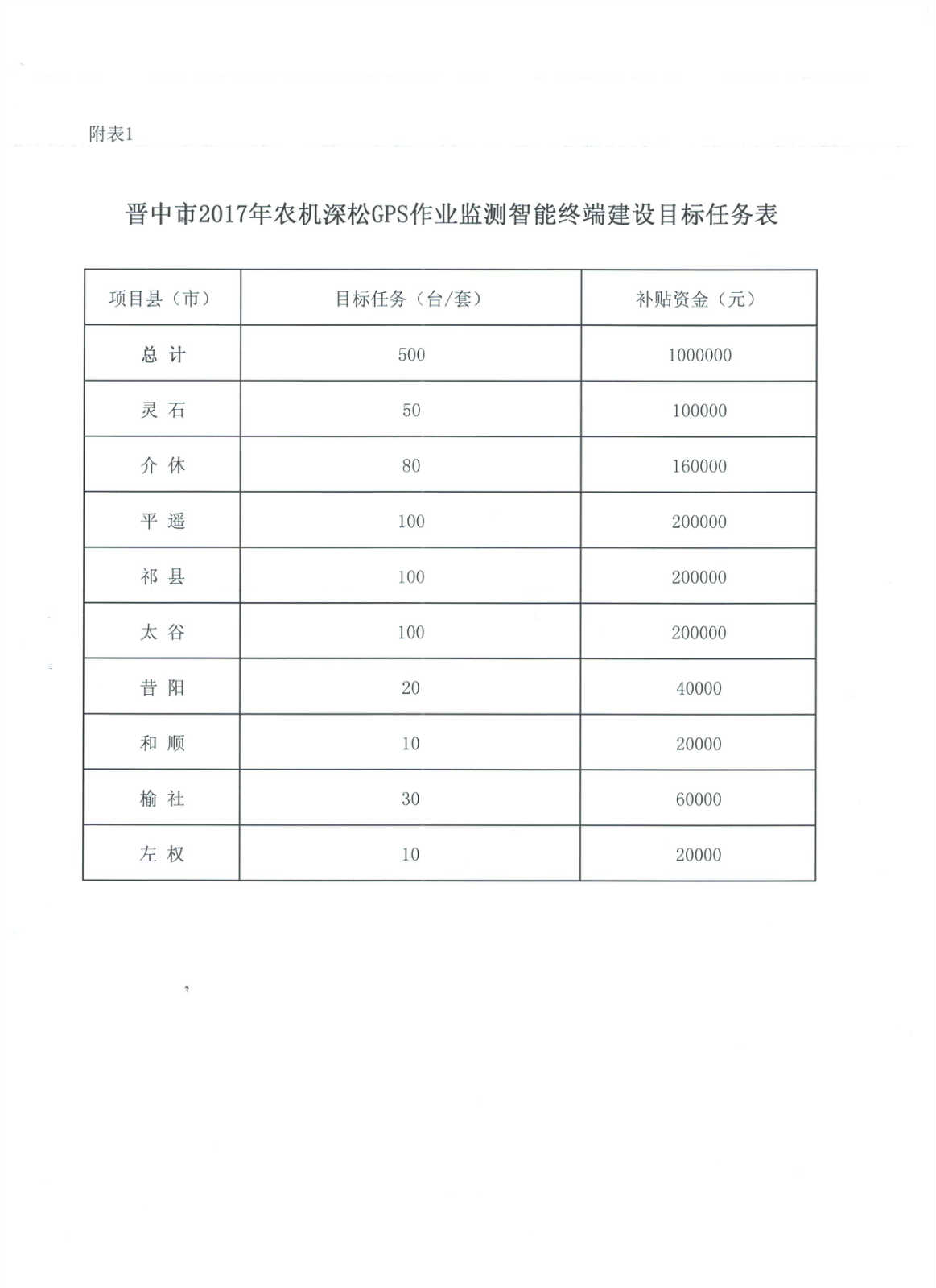晋中市农机局关于做好智慧农机平台暨深松作业监控终端建设工作的通知