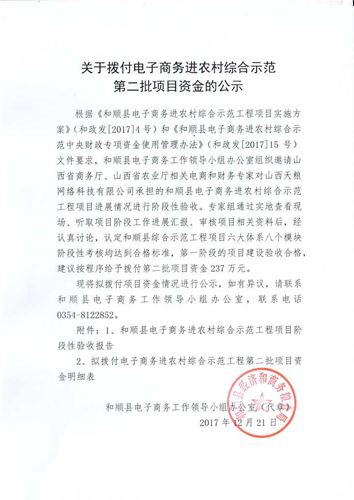 关于拨付电子商务进农村综合示范第二批项目资金的公示