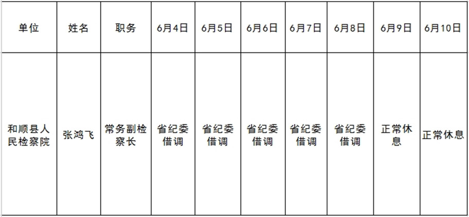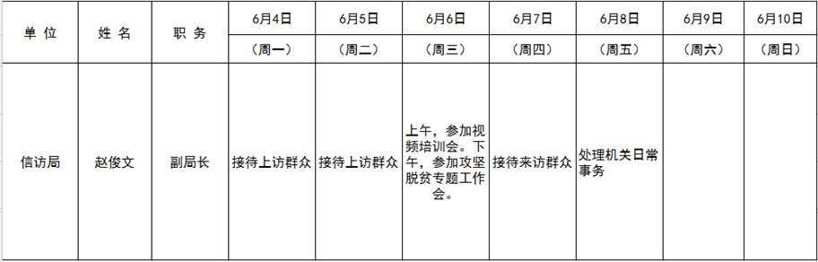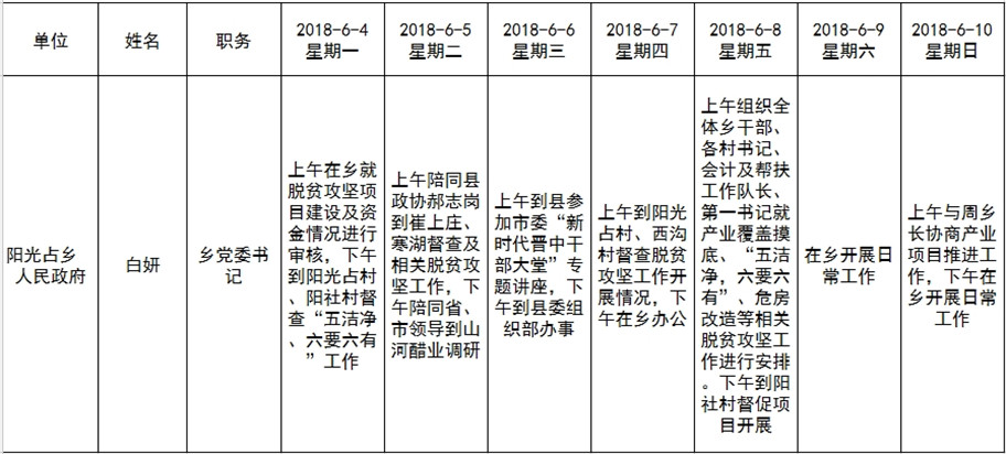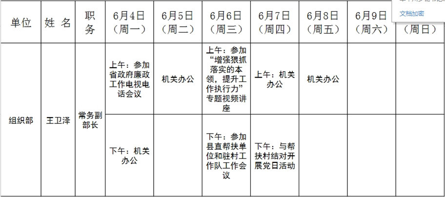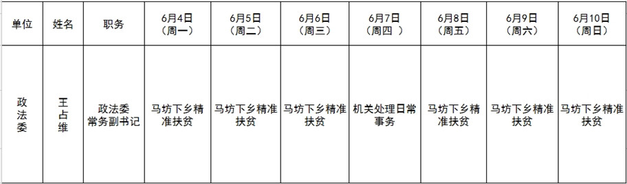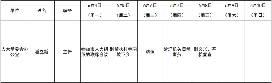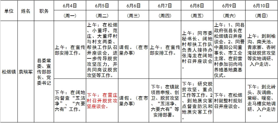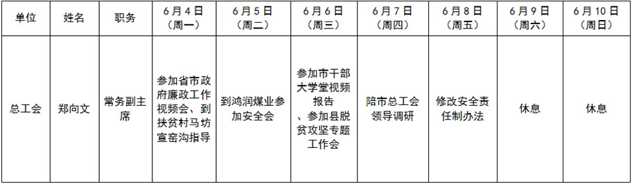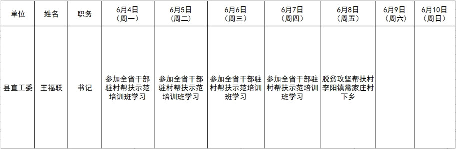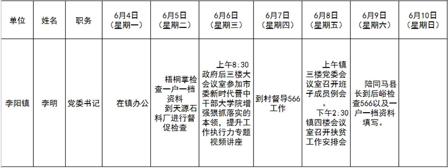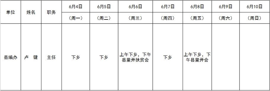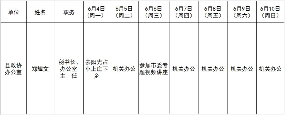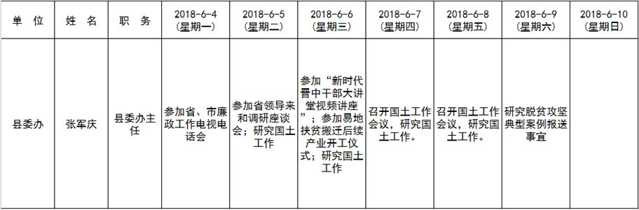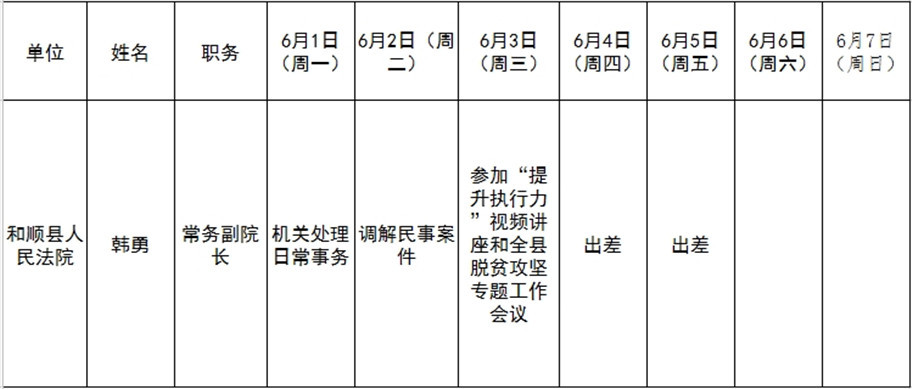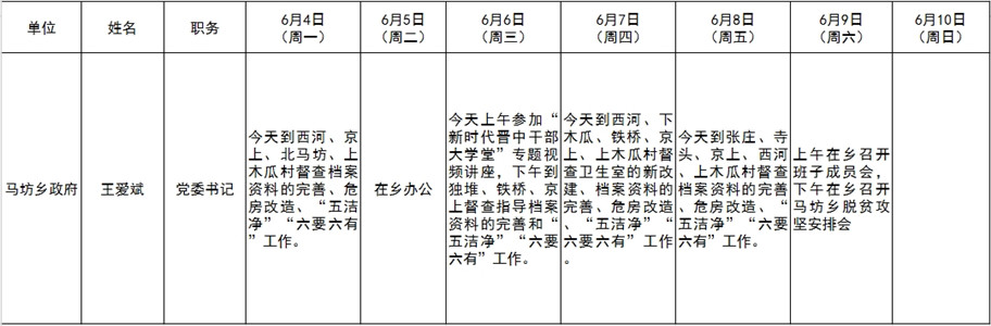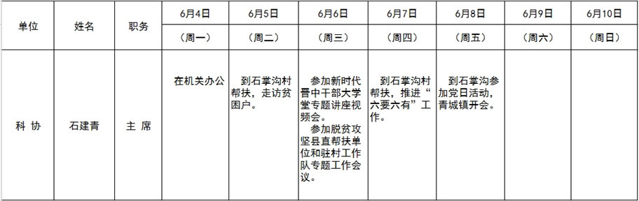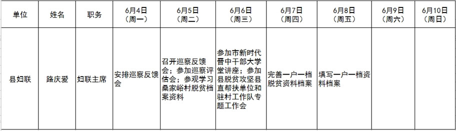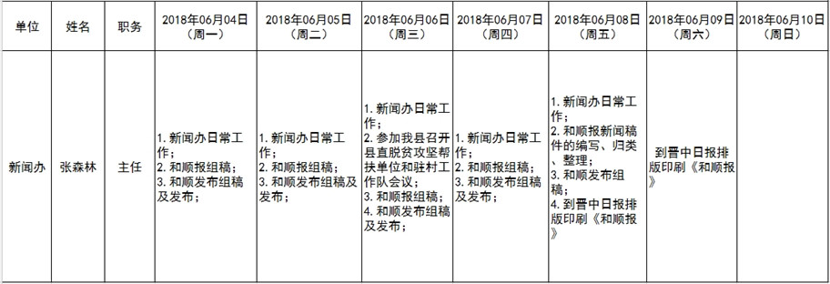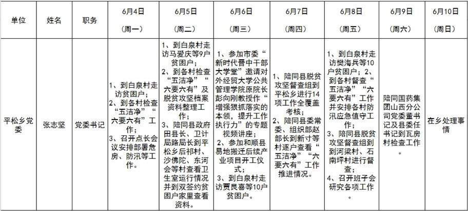 和顺县党委系统领导干部一周工作清单(06月4日—06月10日)