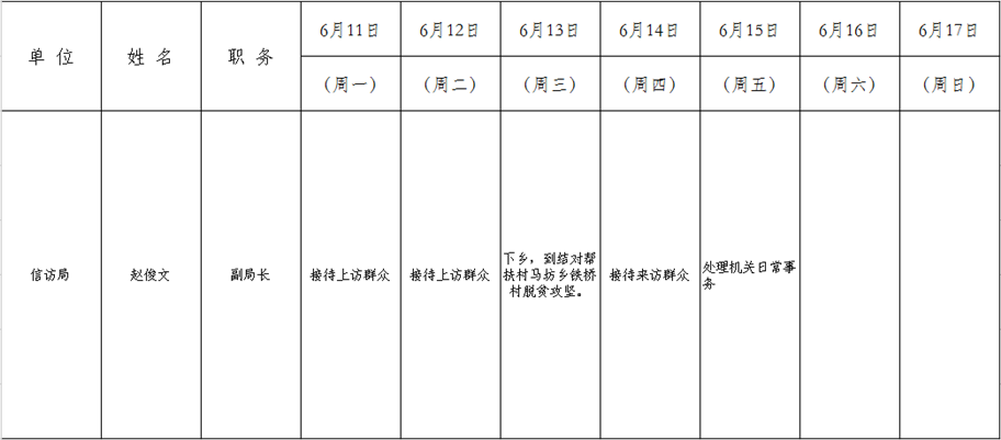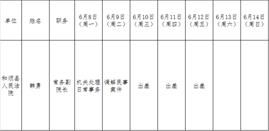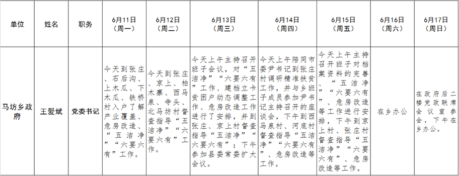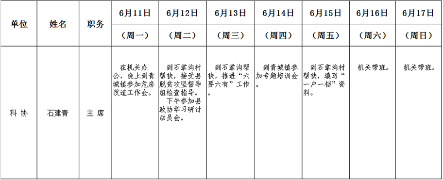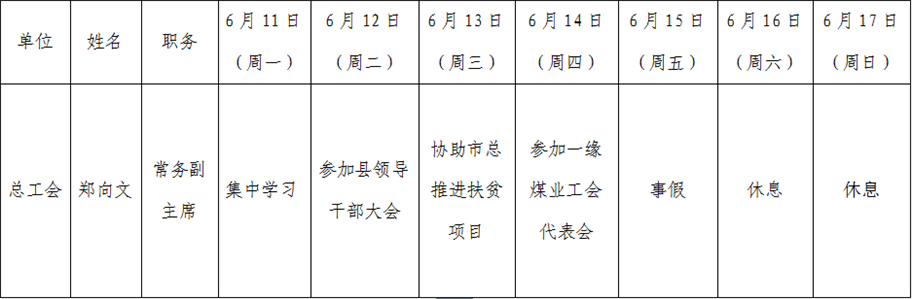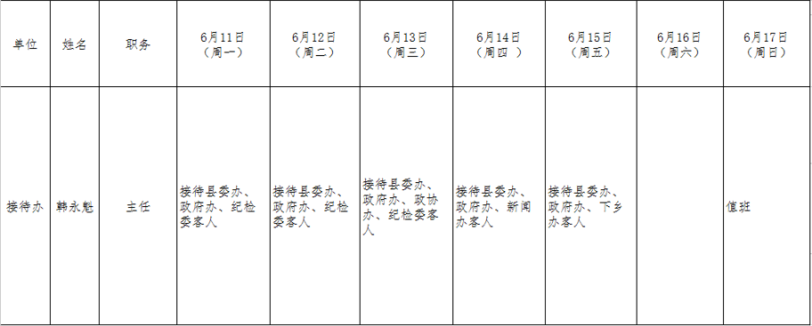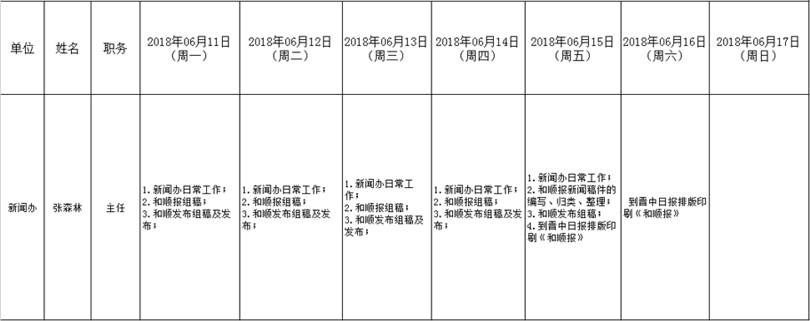 和顺县党委系统领导干部一周工作清单(06月11日—06月17日)
