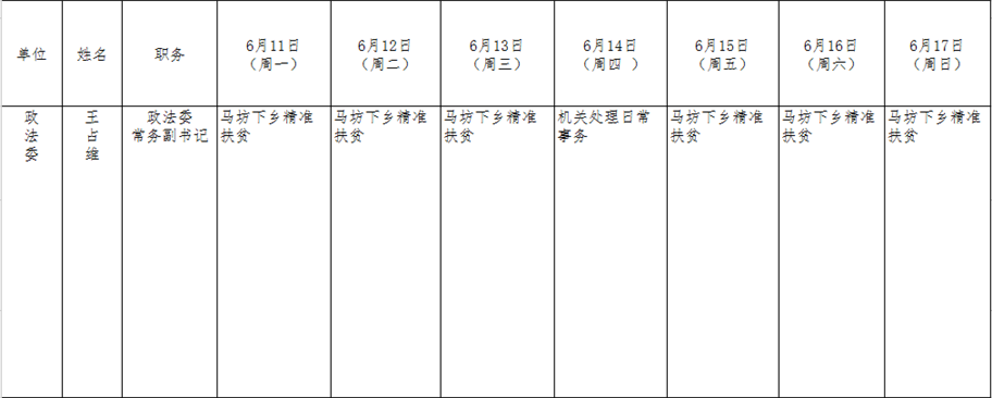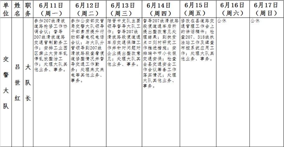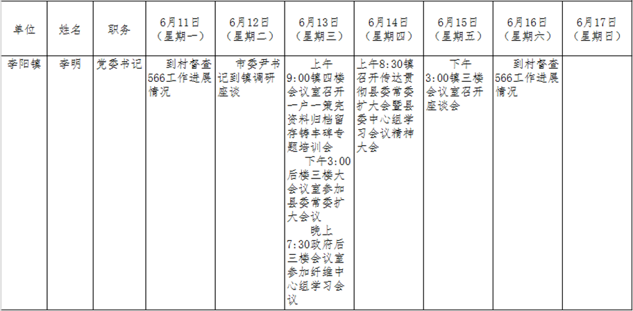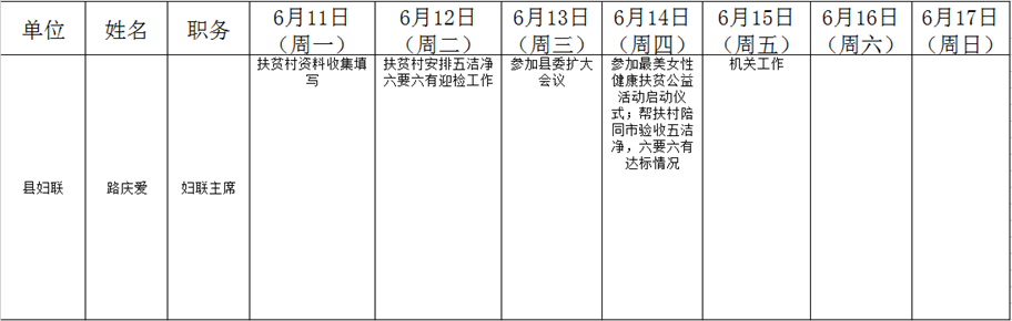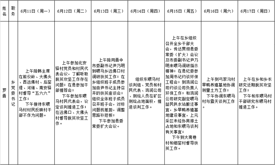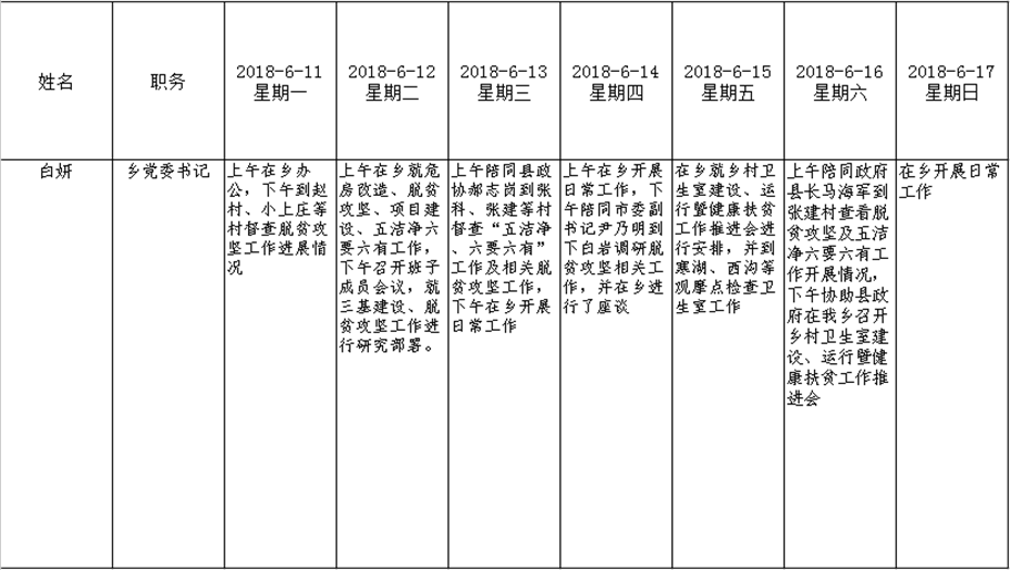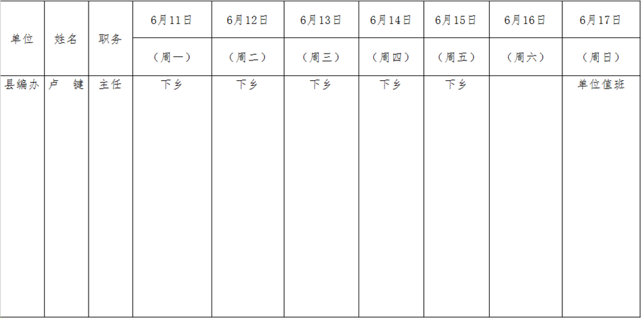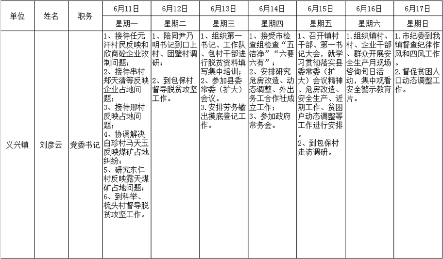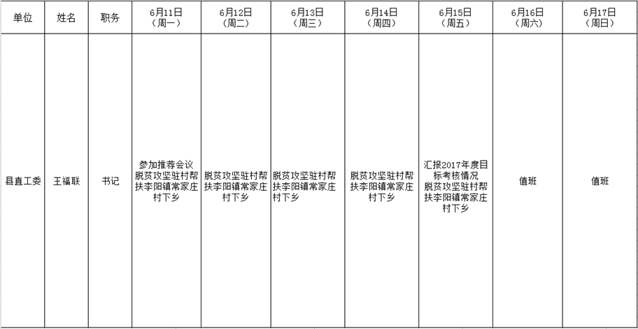 全县领导干部一周工作清单