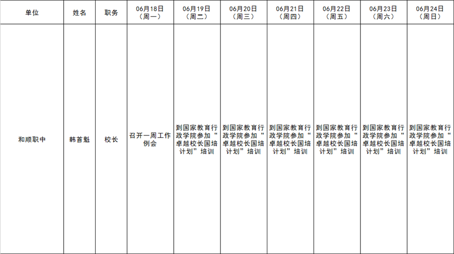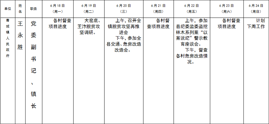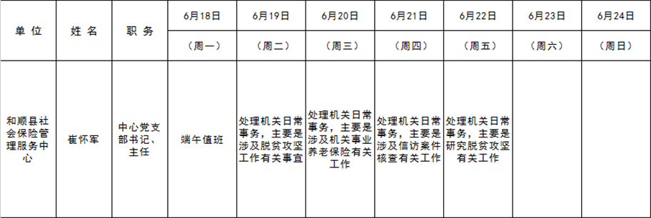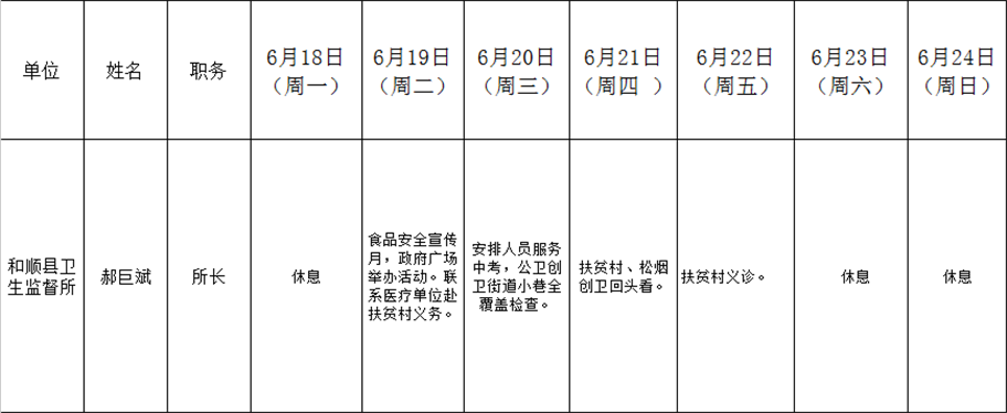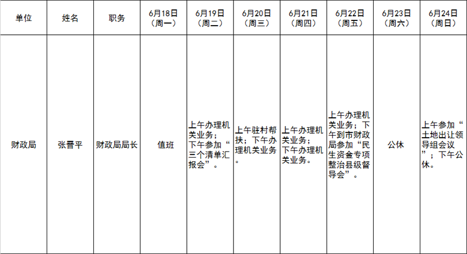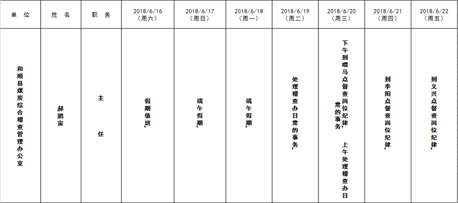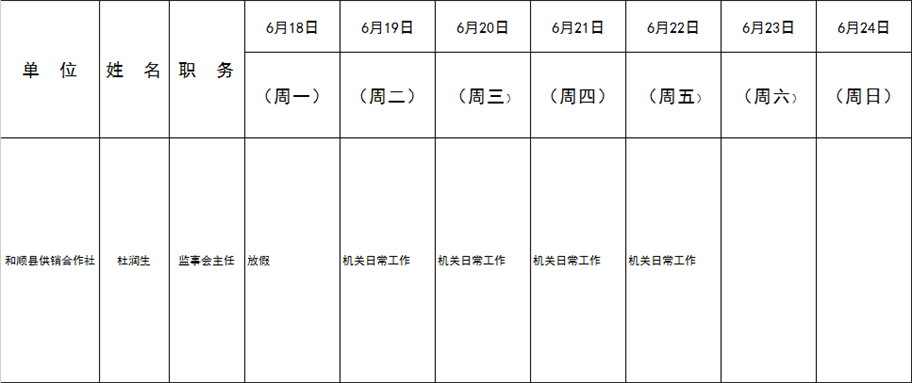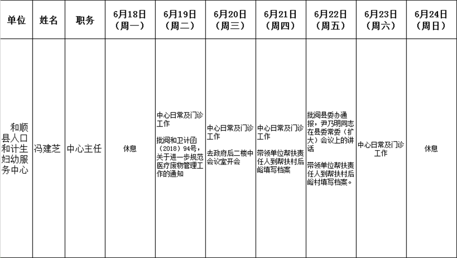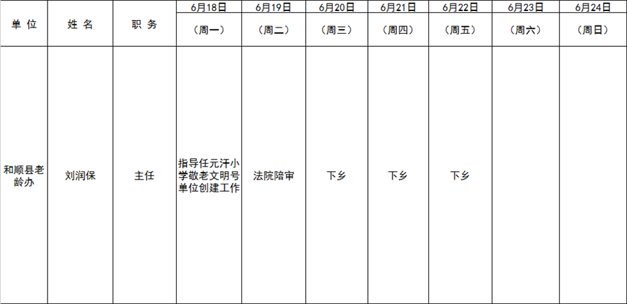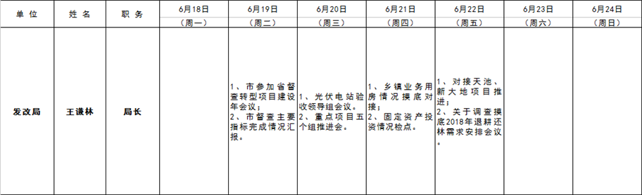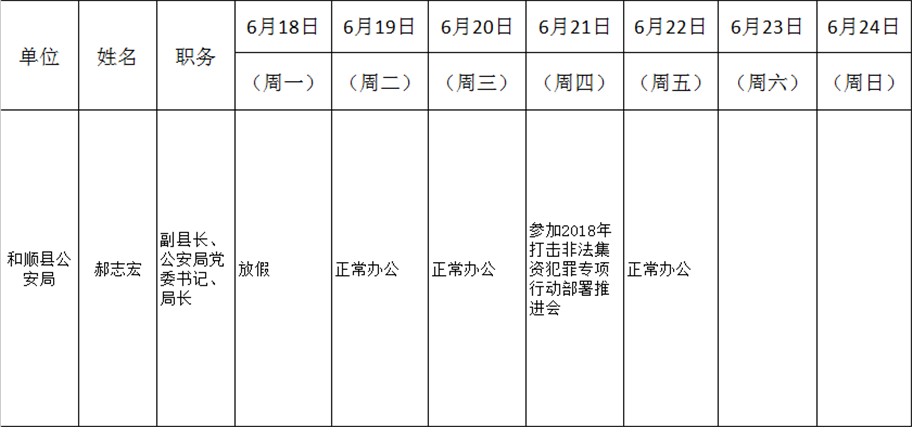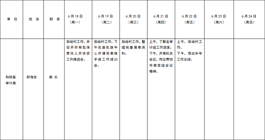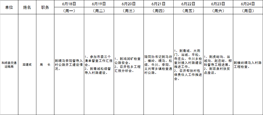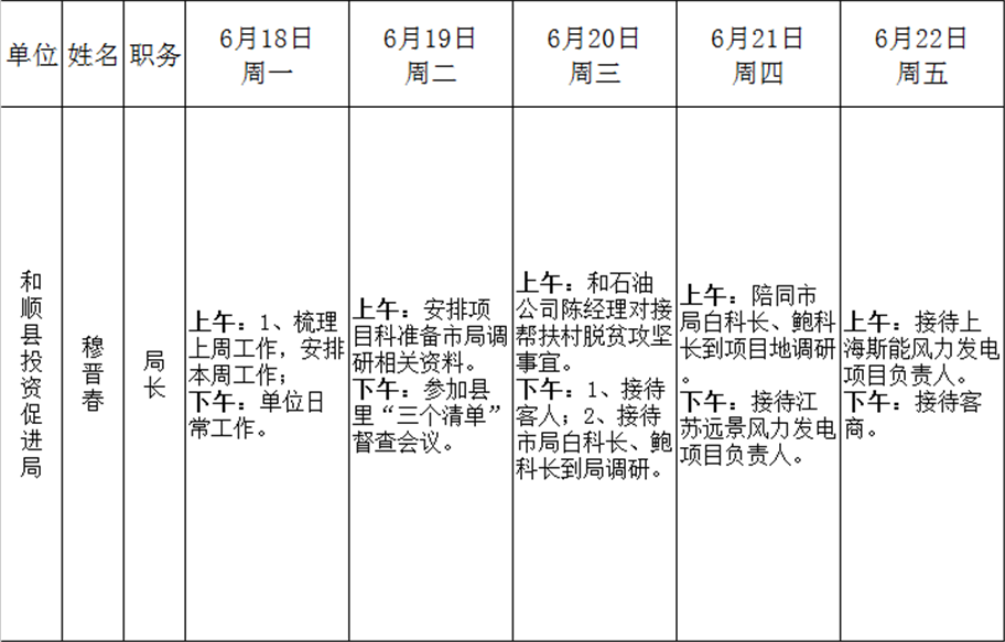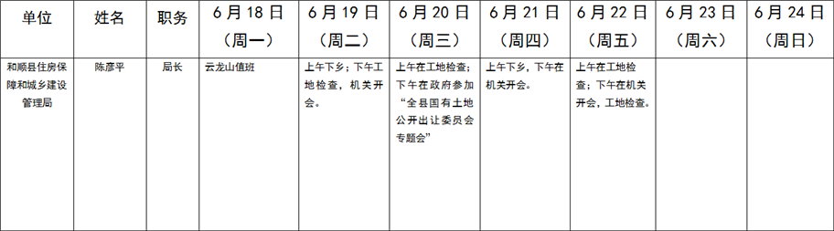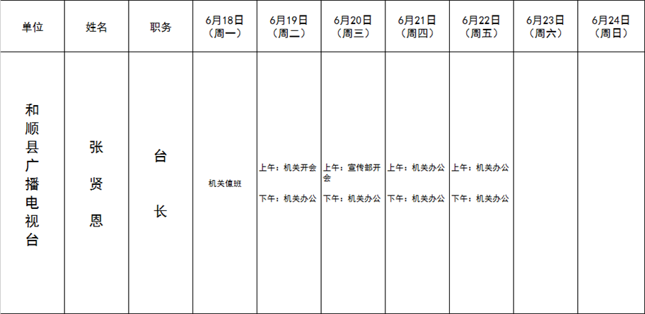 和顺县政府系统领导干部一周工作清单(06月18日—06月24日)