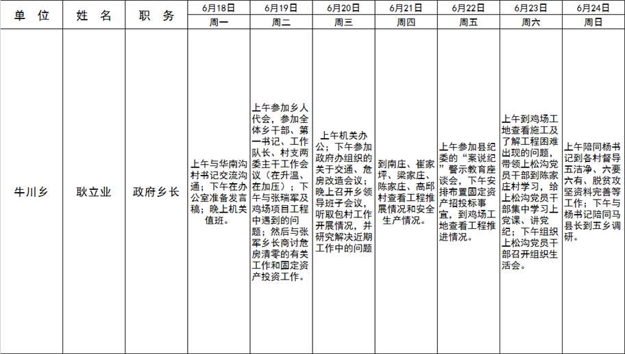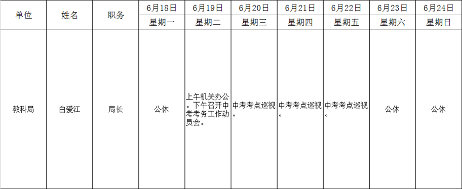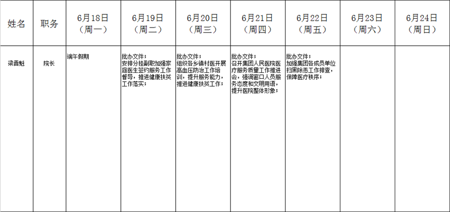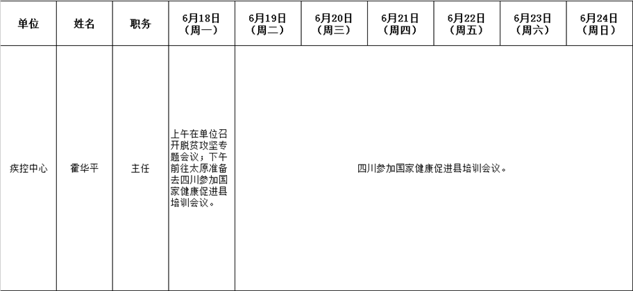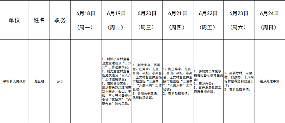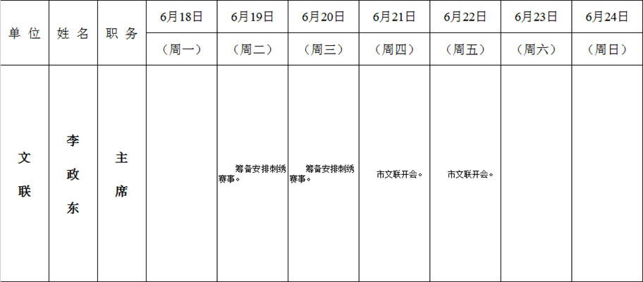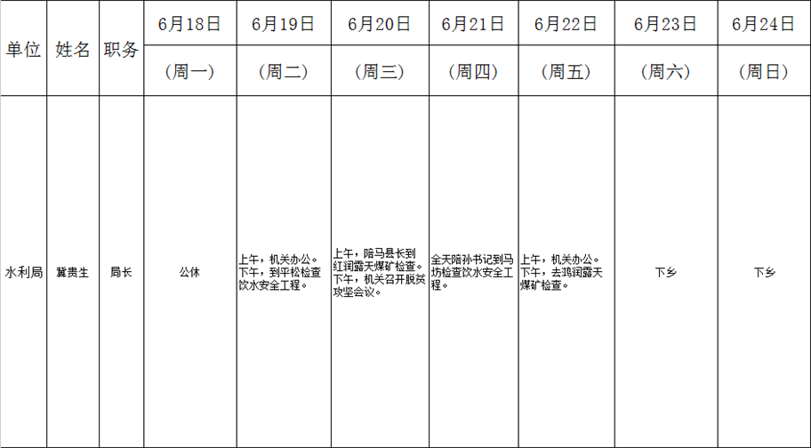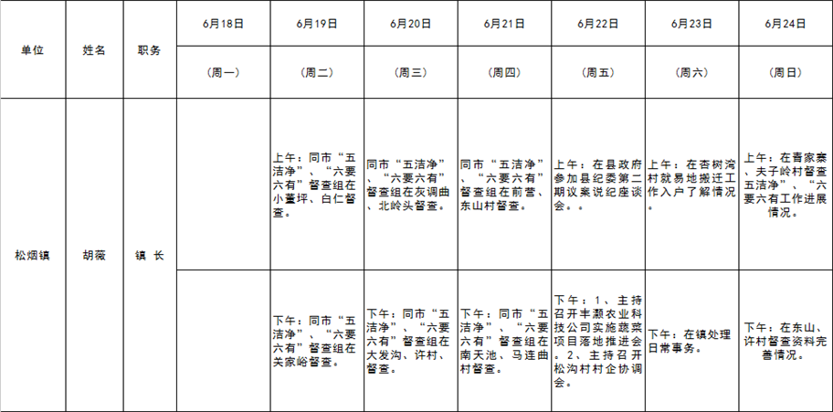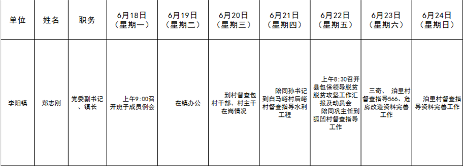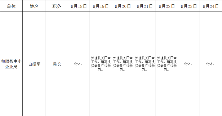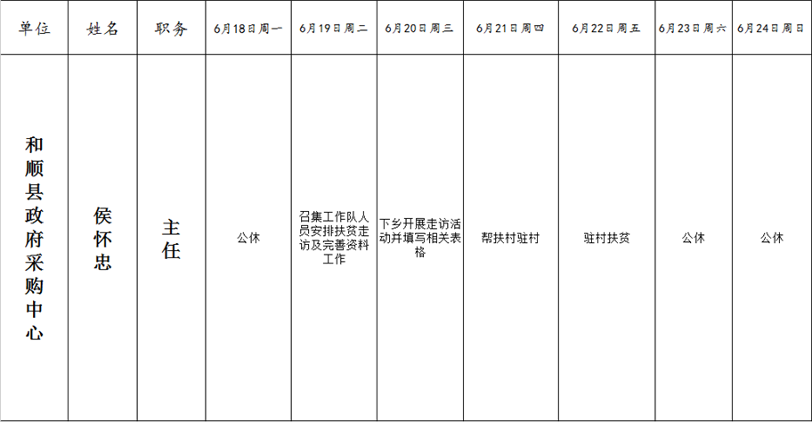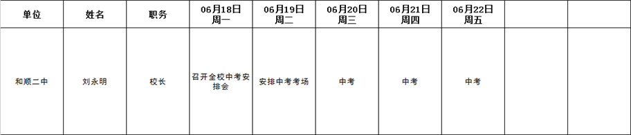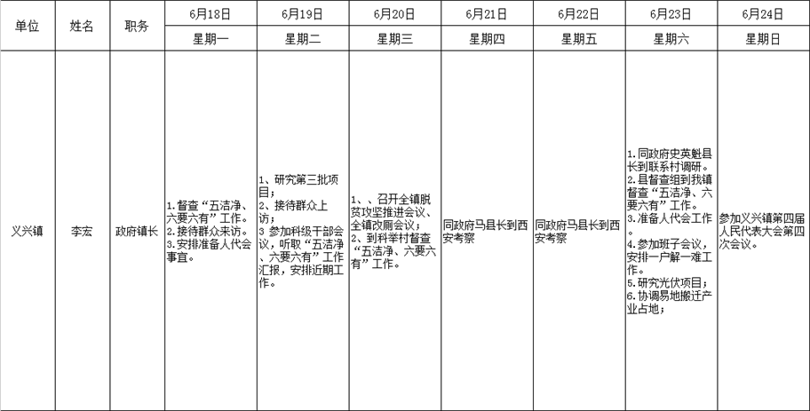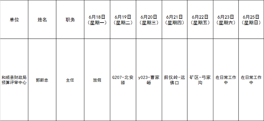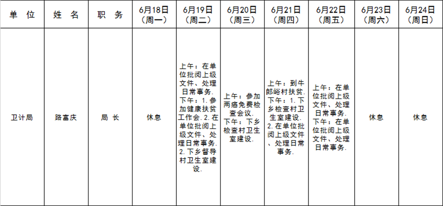 和顺县政府系统领导干部一周工作清单(06月18日—06月24日)