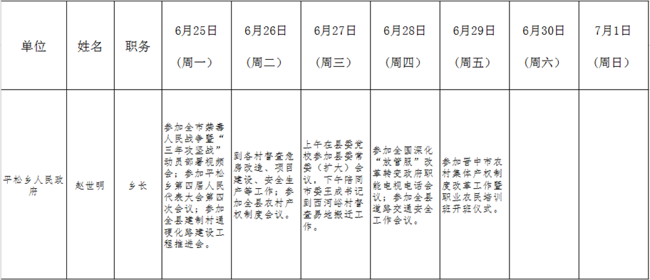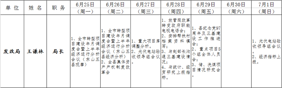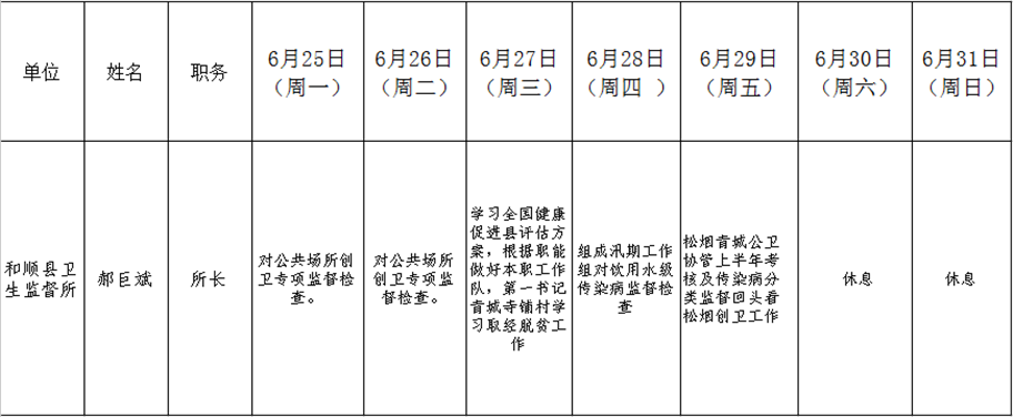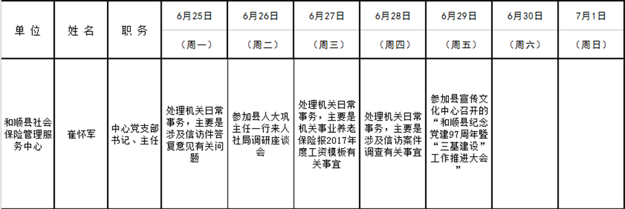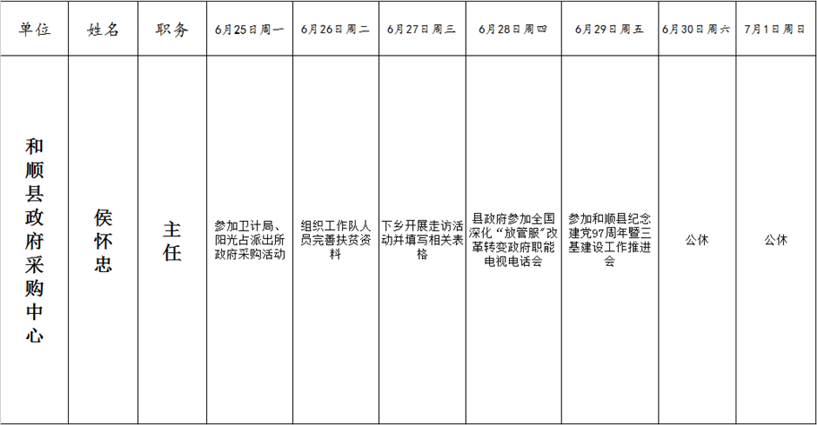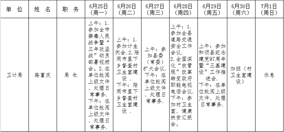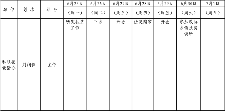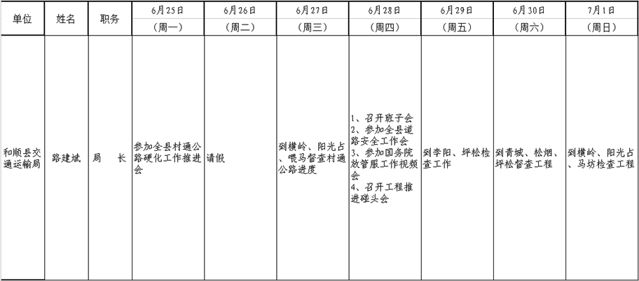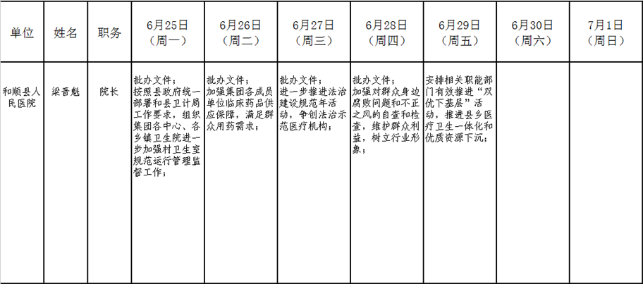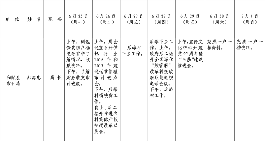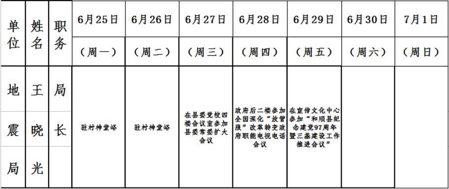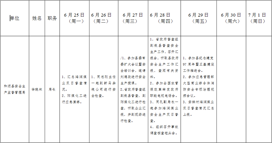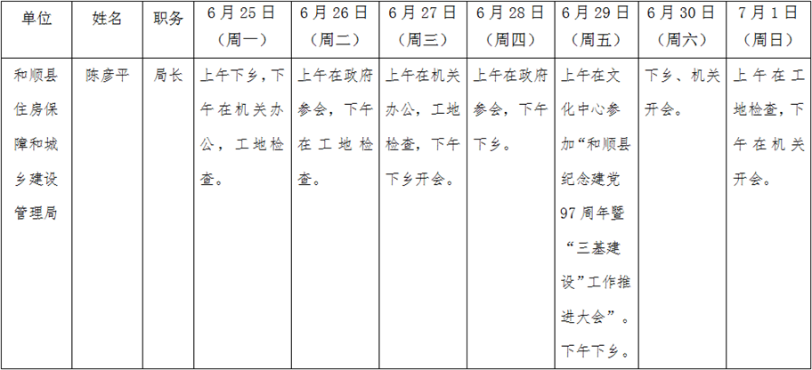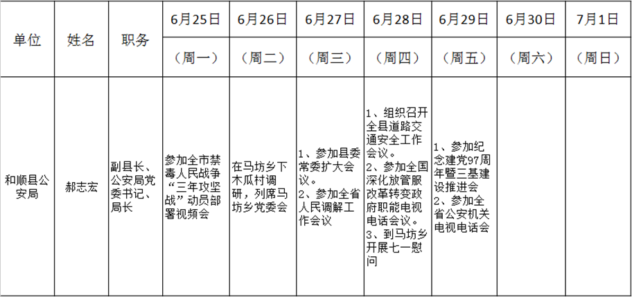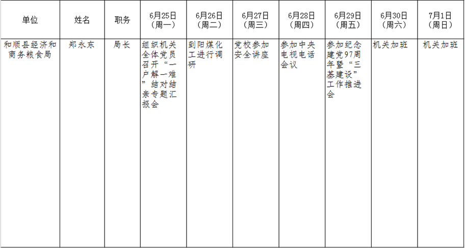 和顺县政府系统领导干部一周工作清单(06月25日—07月01日)