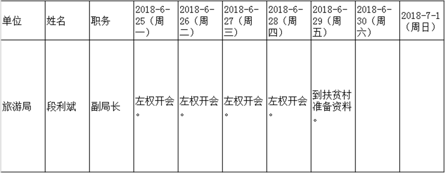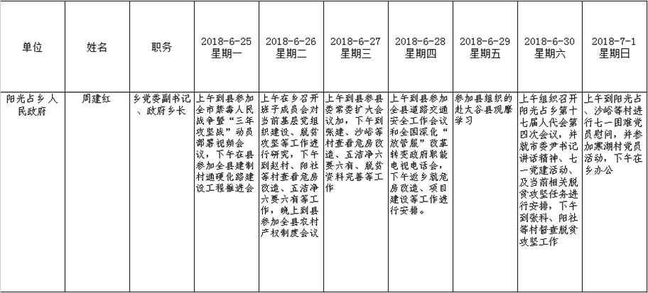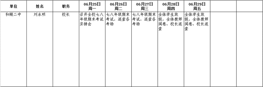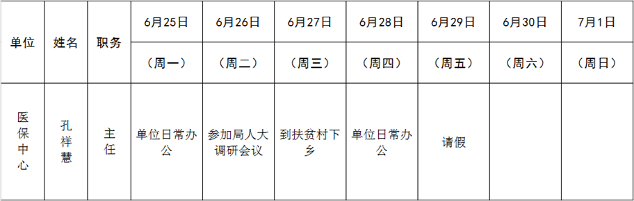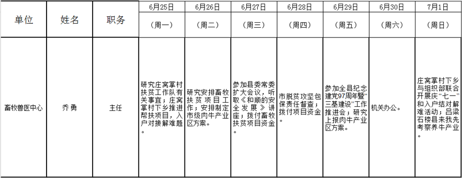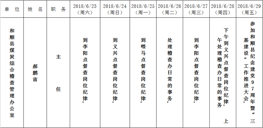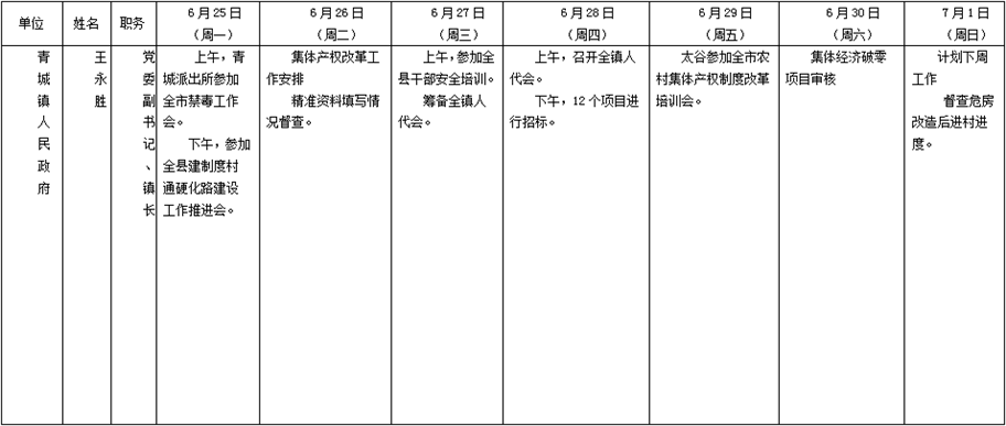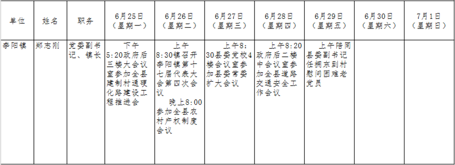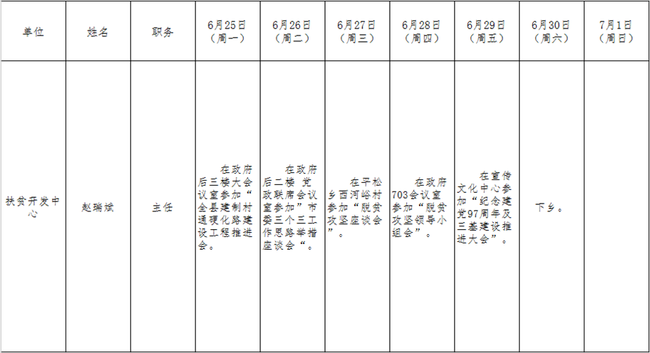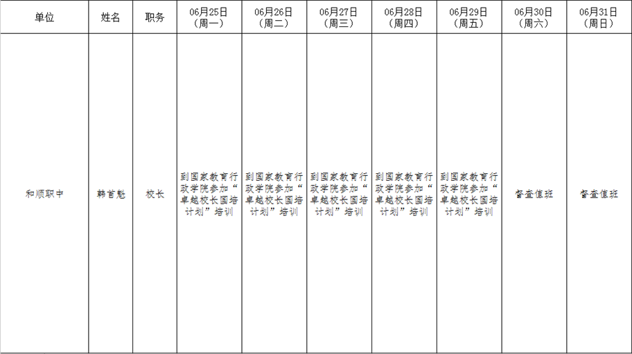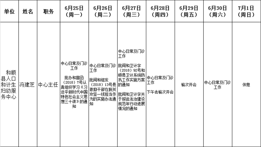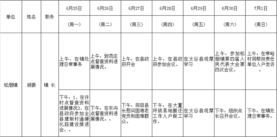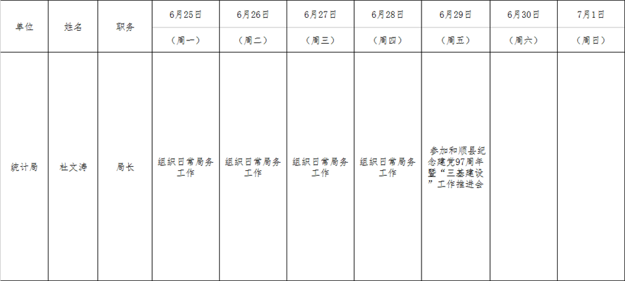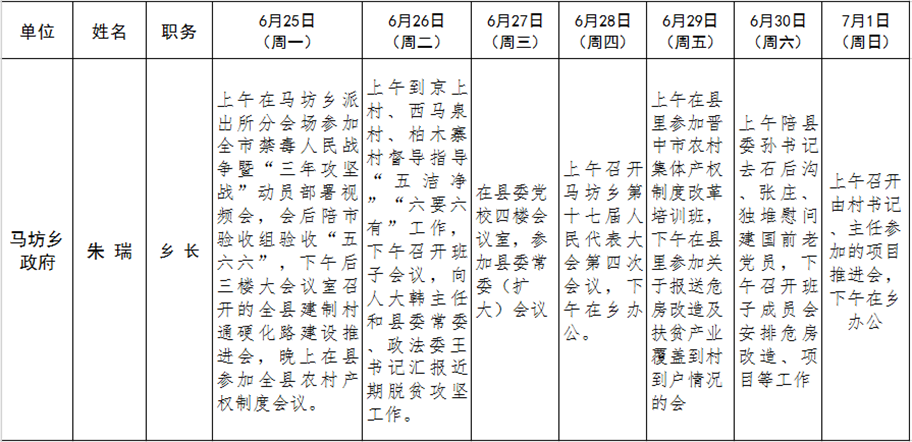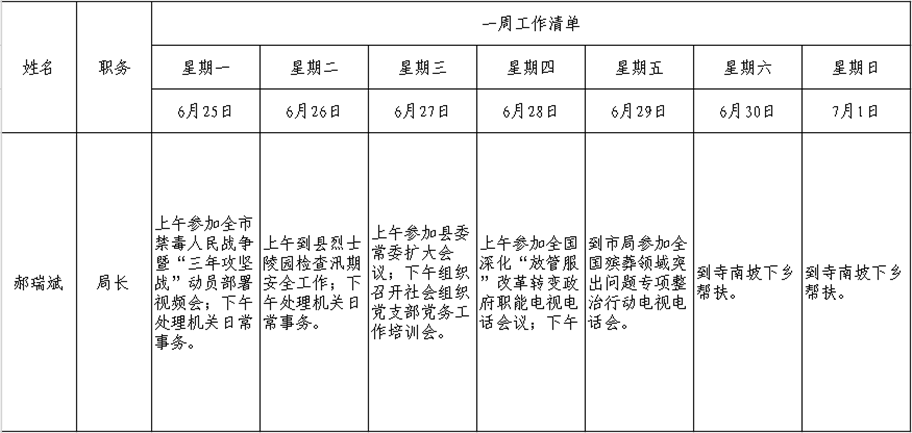 和顺县政府系统领导干部一周工作清单(06月25日—07月01日)