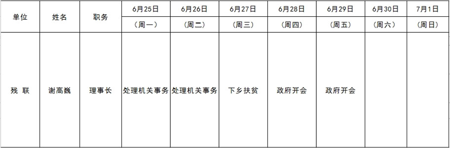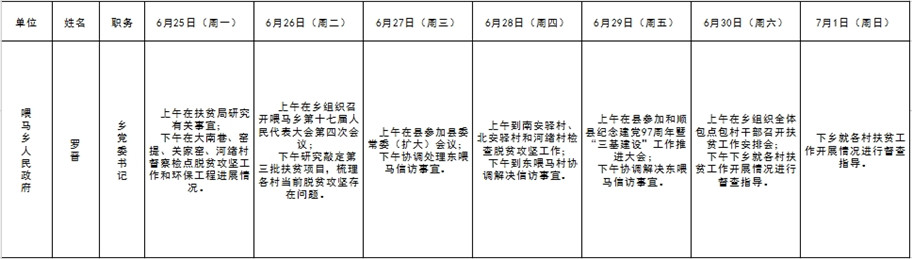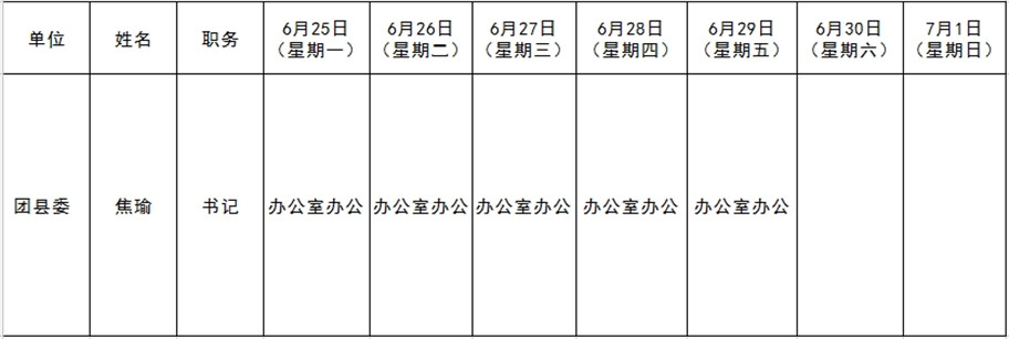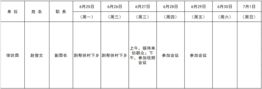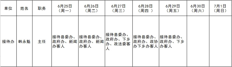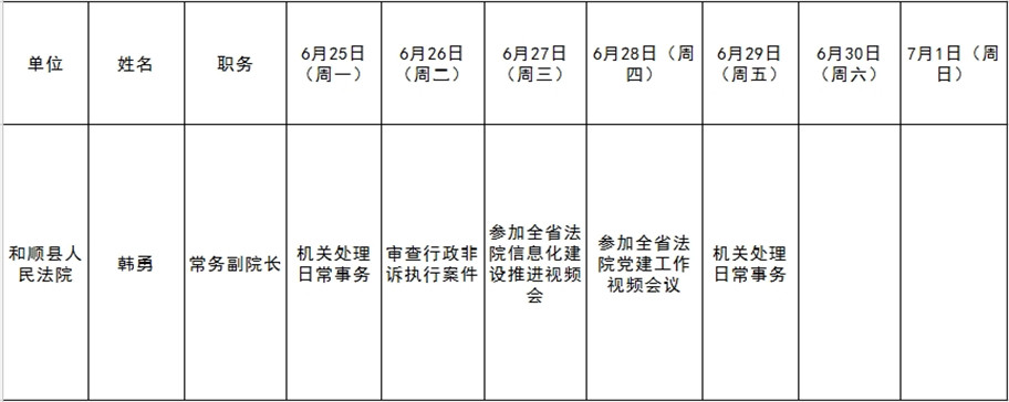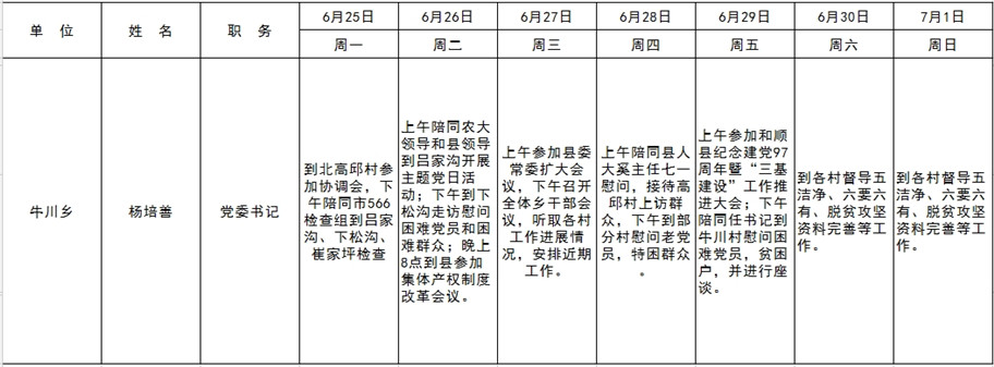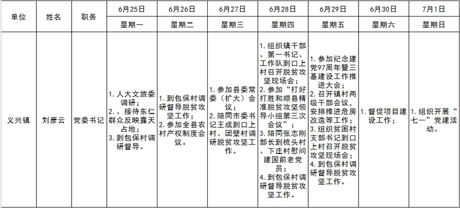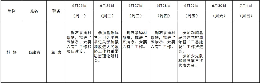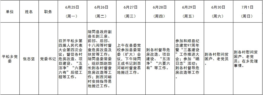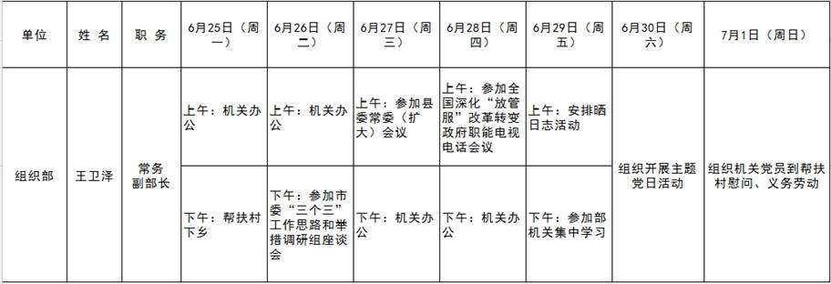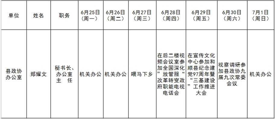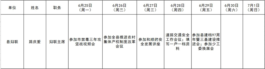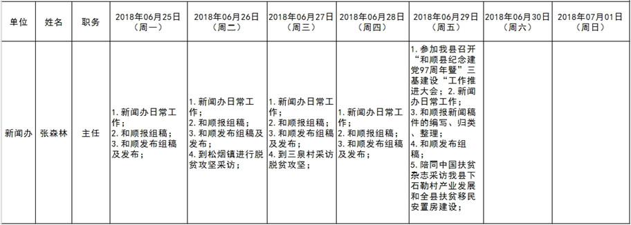和顺县党委系统领导干部一周工作清单(06月25日—07月01日)