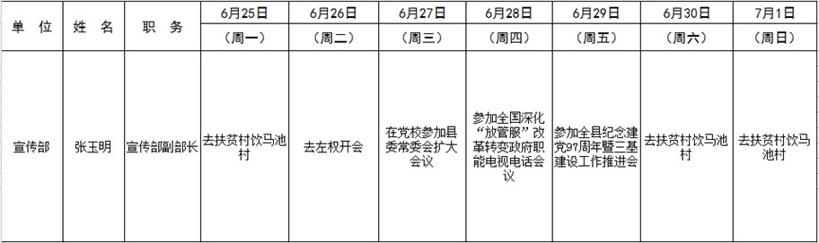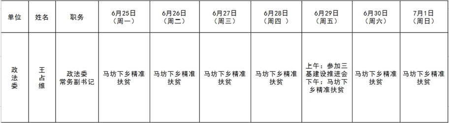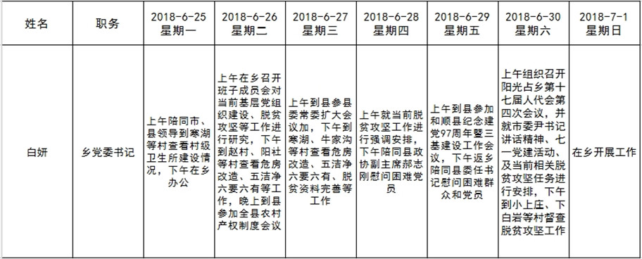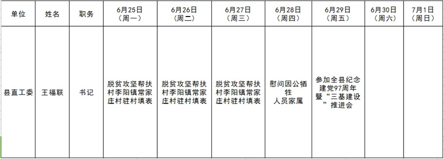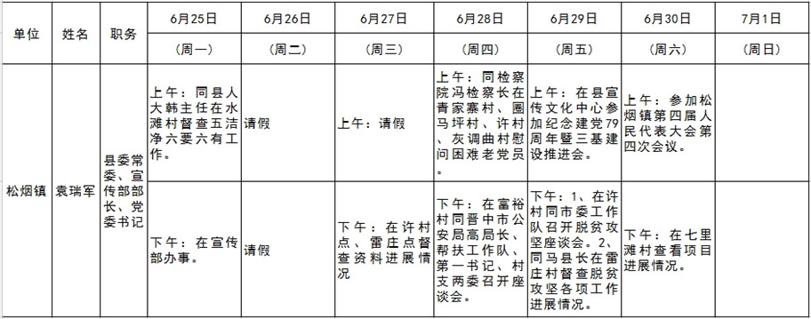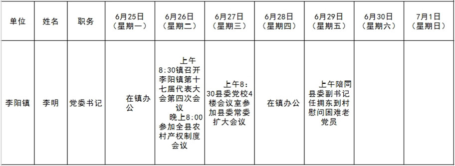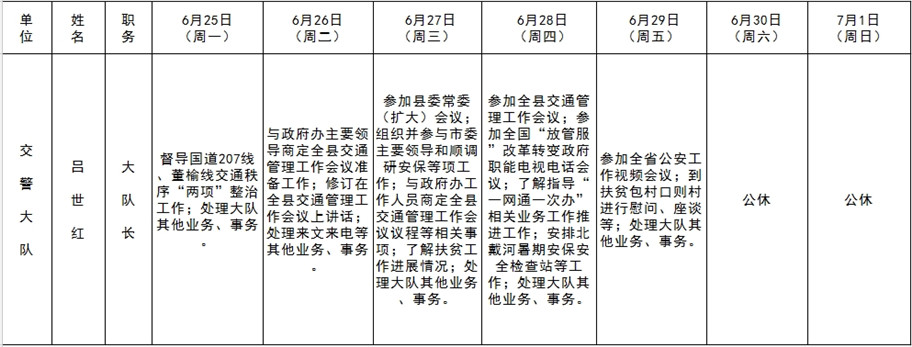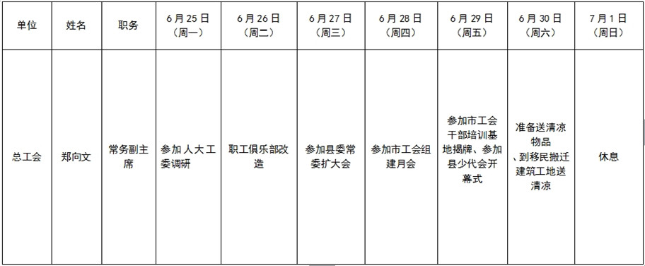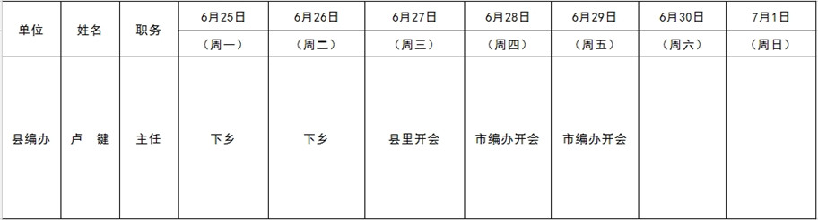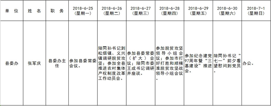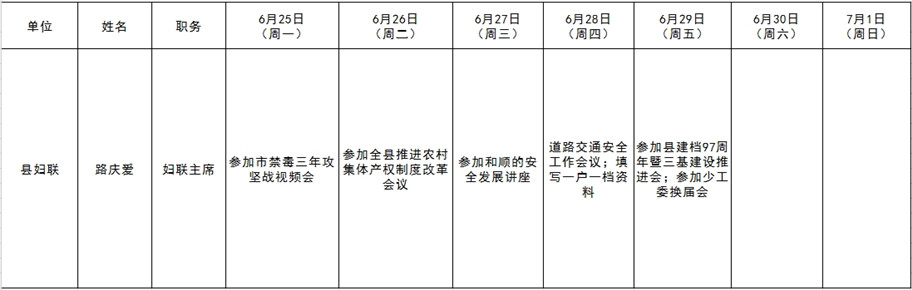 全县领导干部一周工作清单
