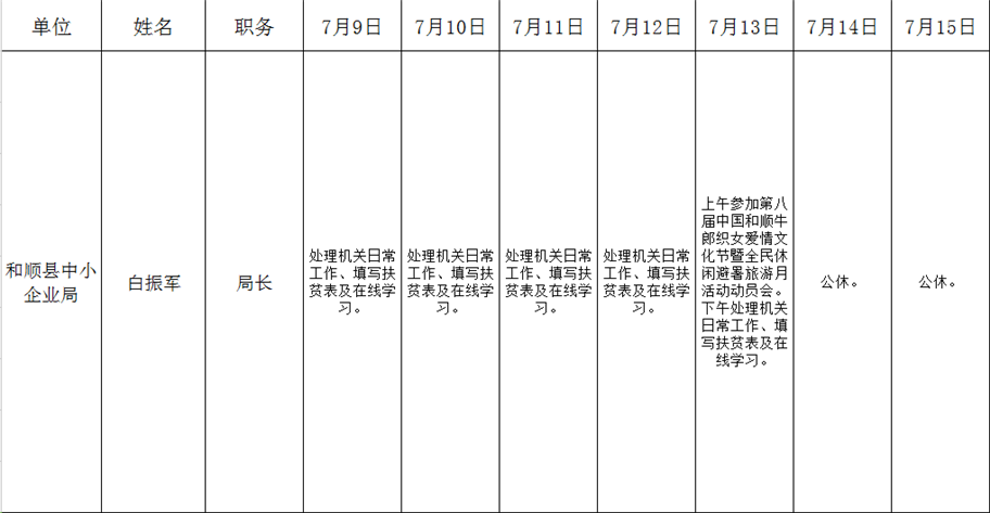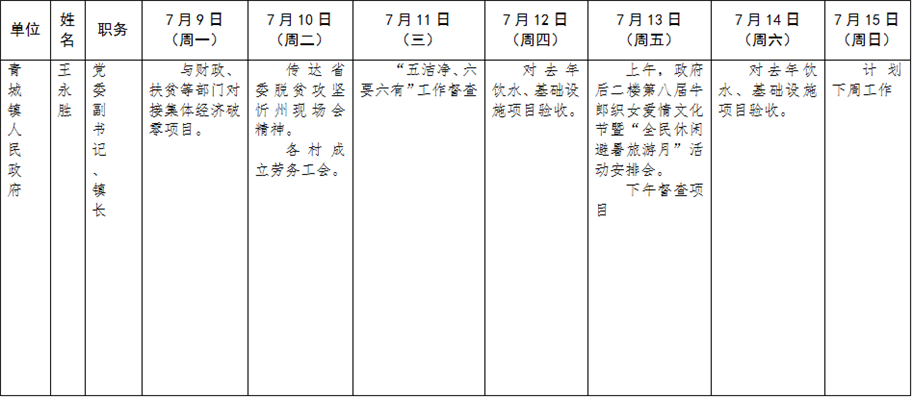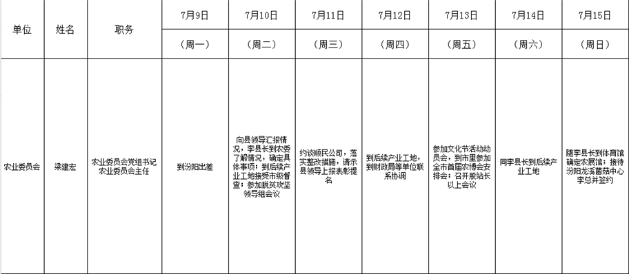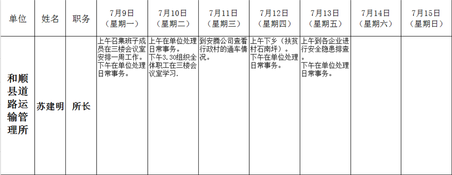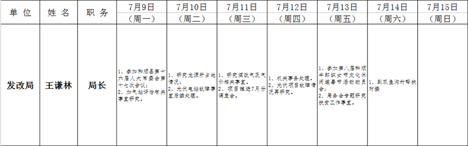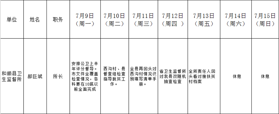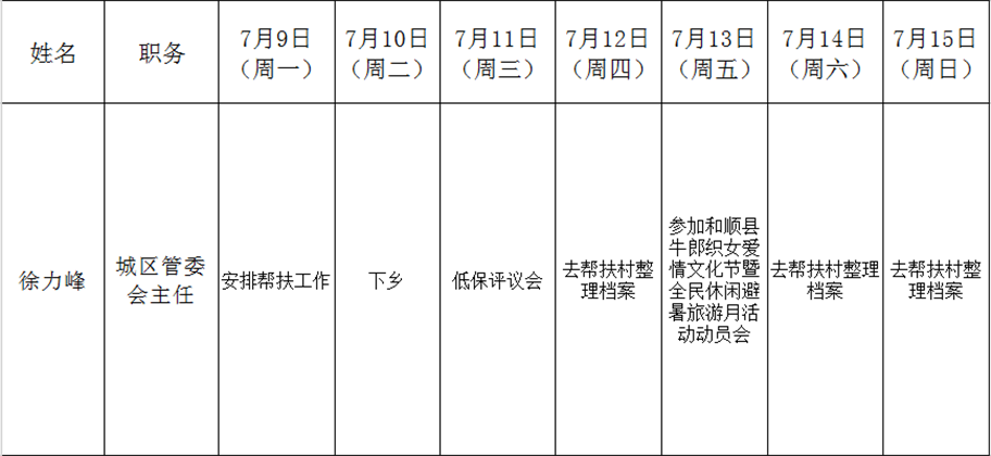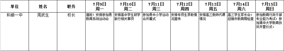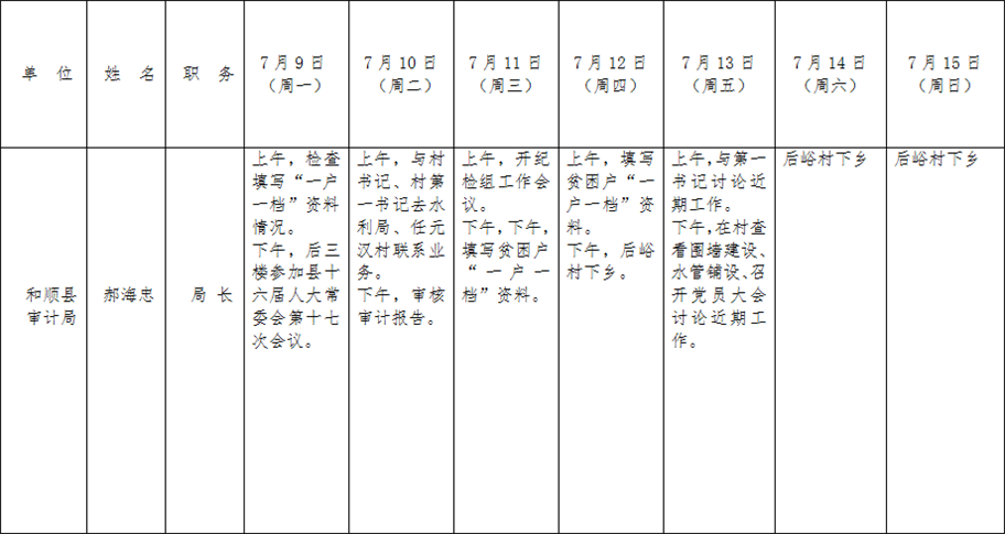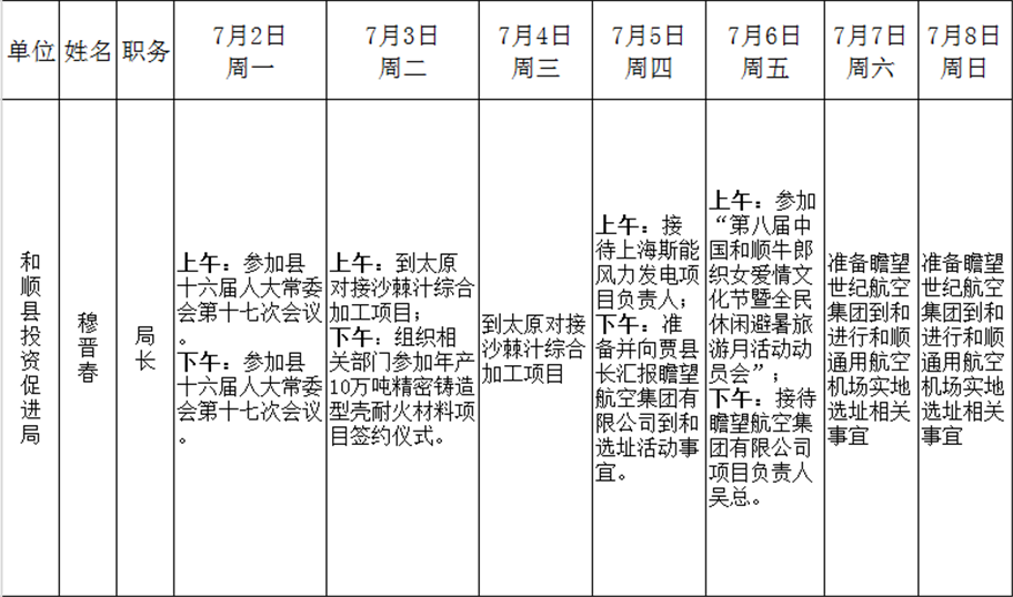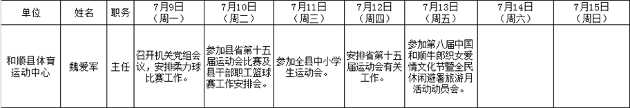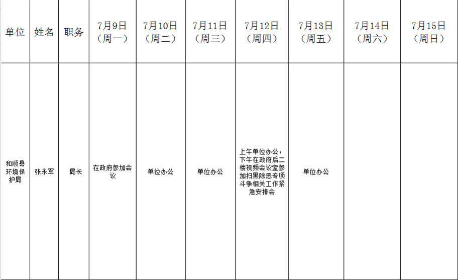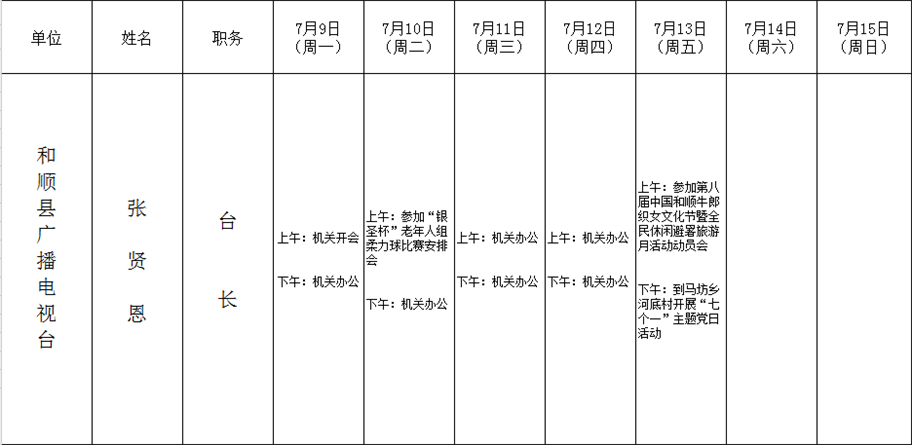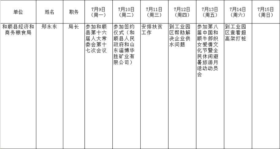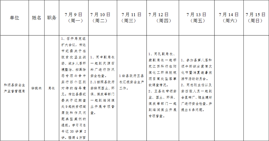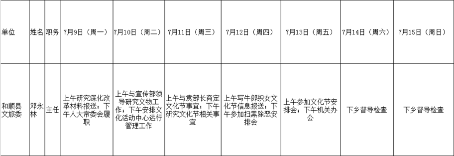 和顺县政府系统领导干部一周工作清单(07月09日—07月15日)