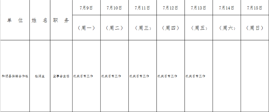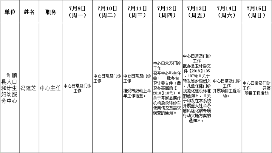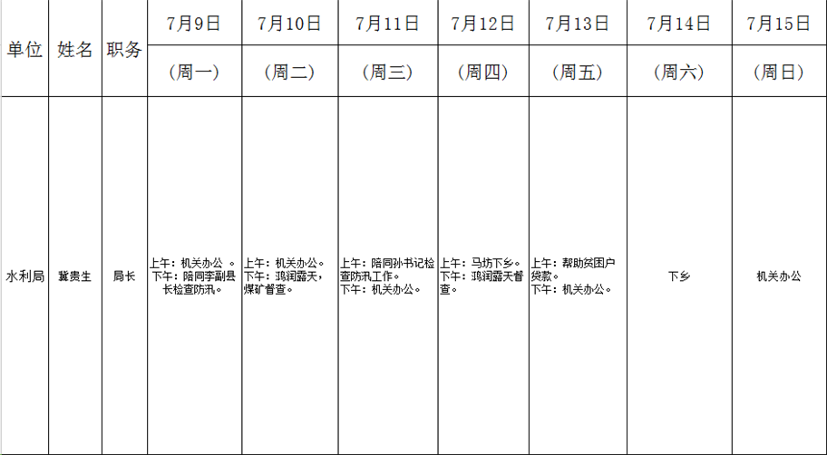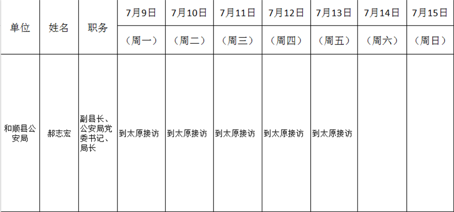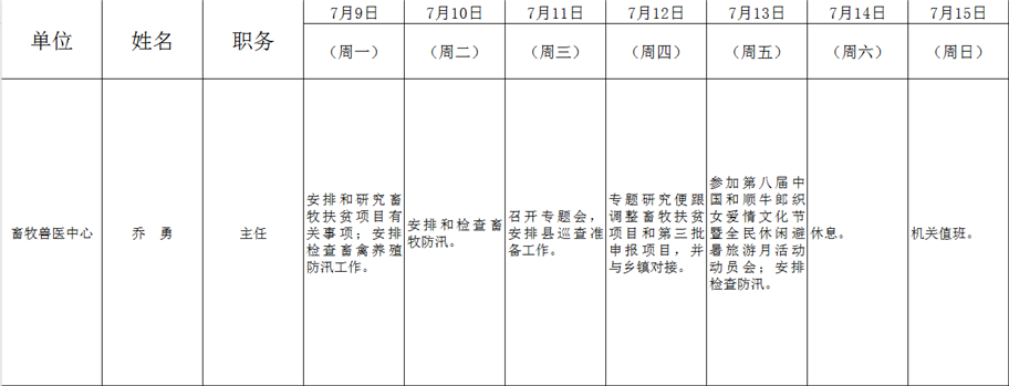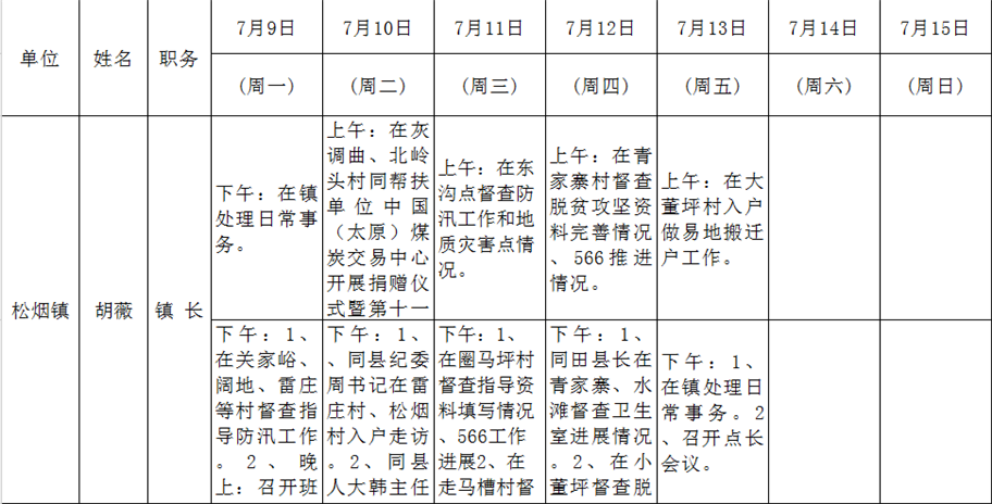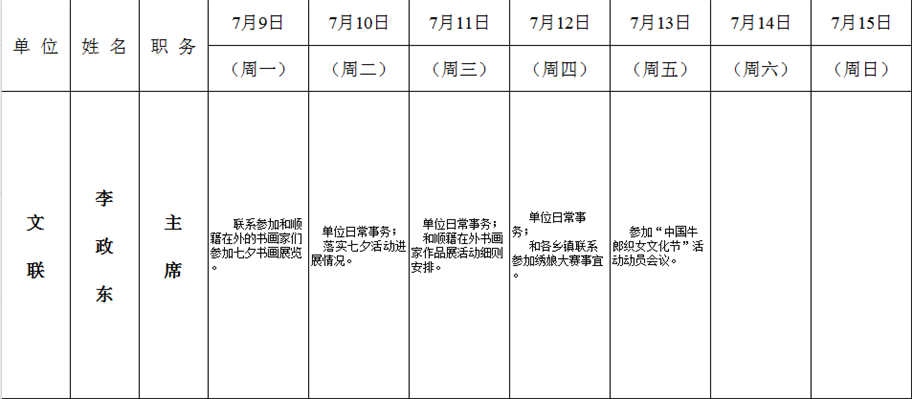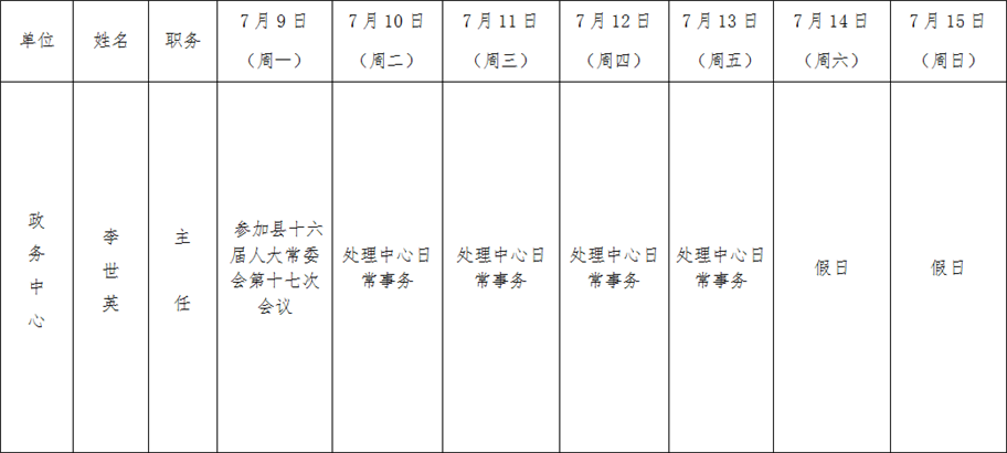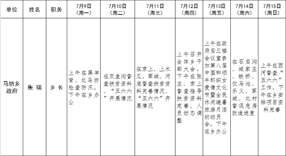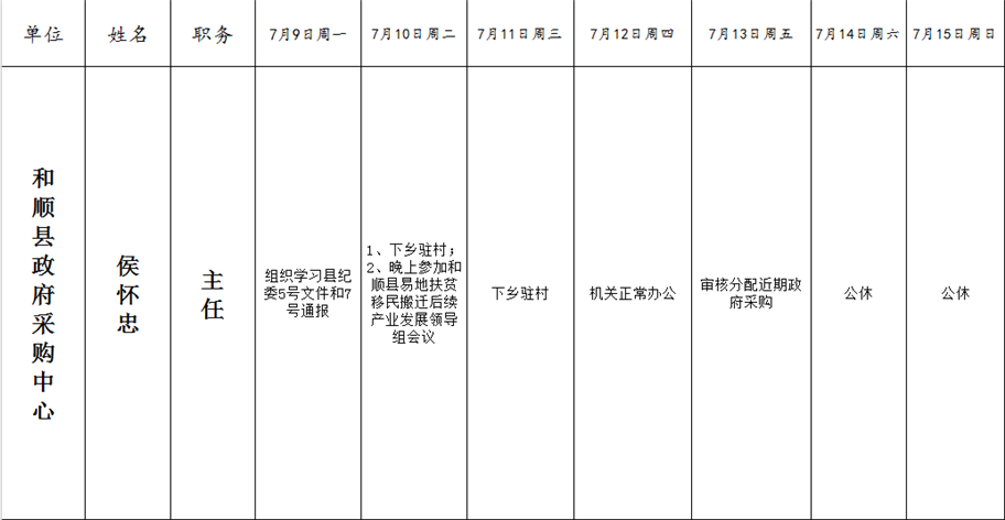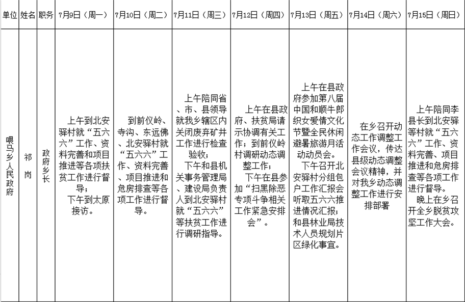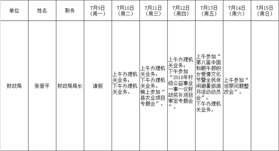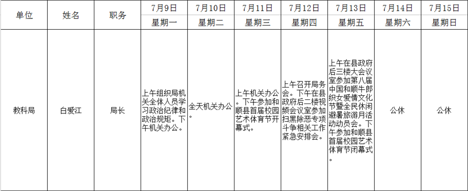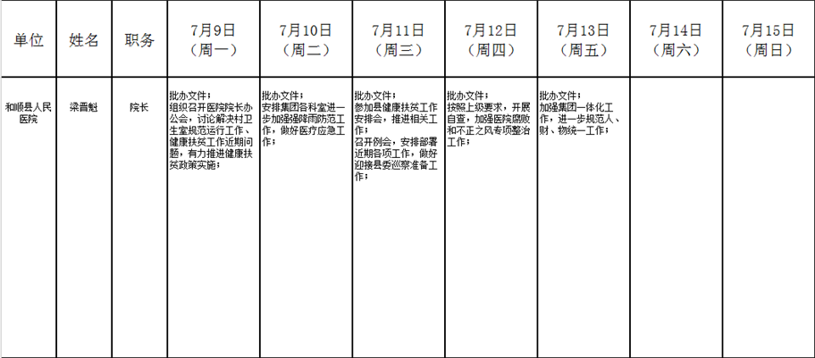和顺县政府系统领导干部一周工作清单(07月09日—07月15日)