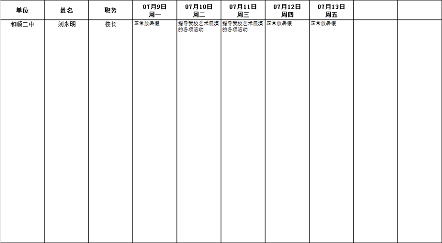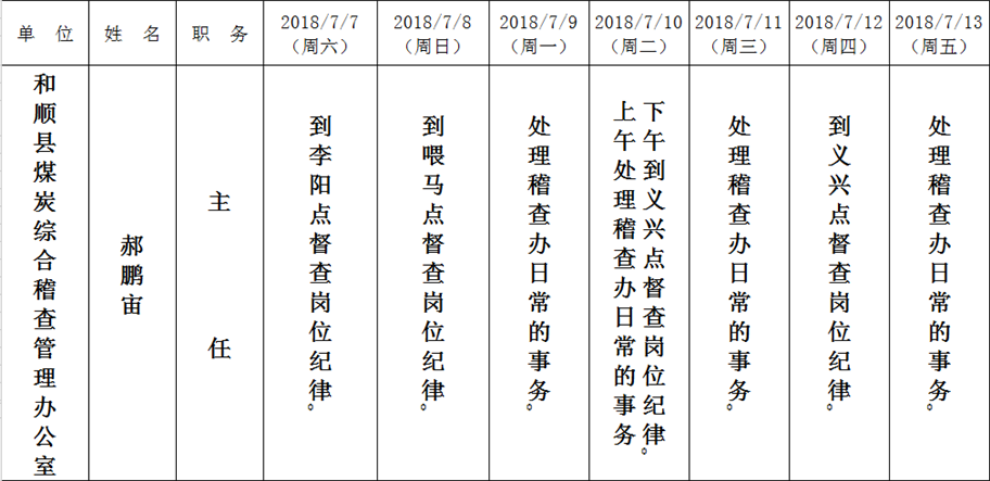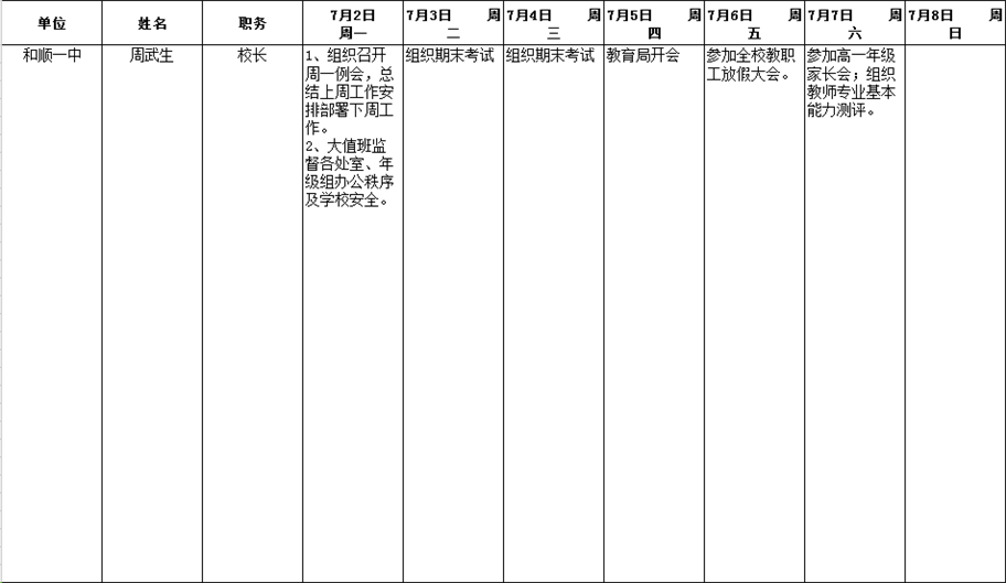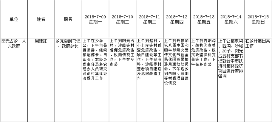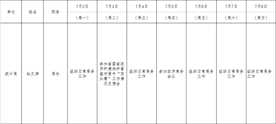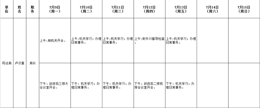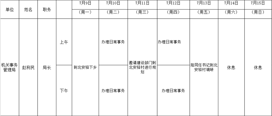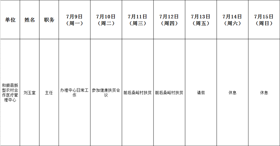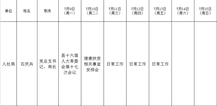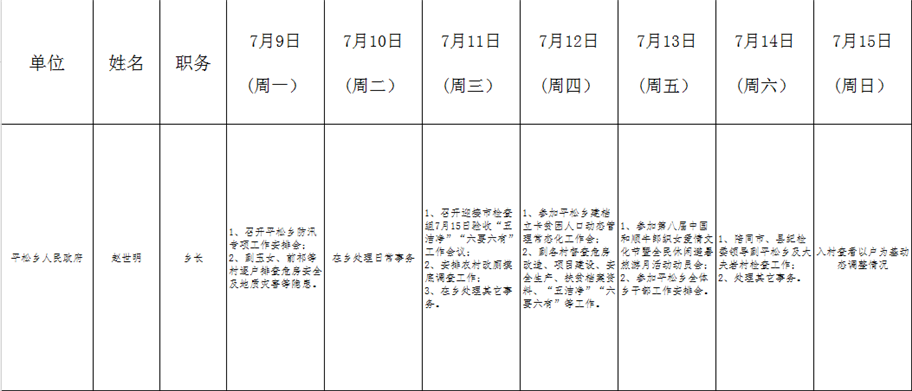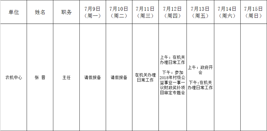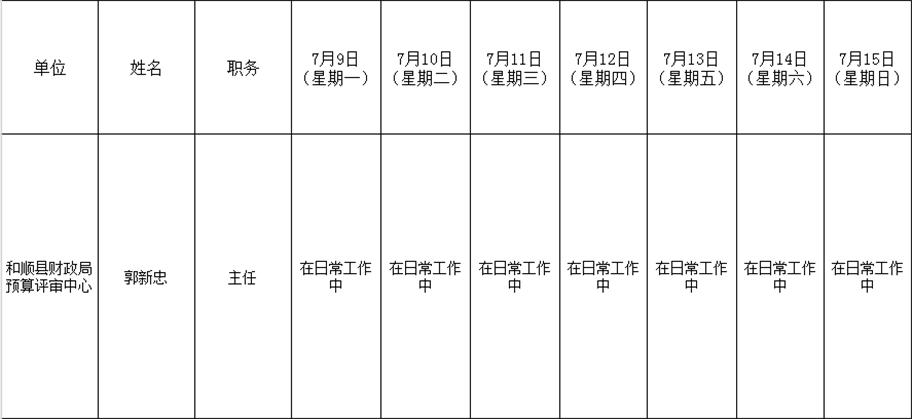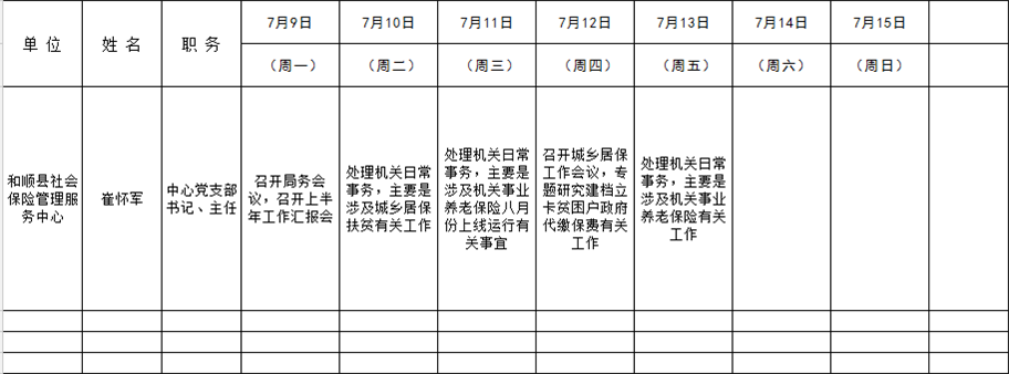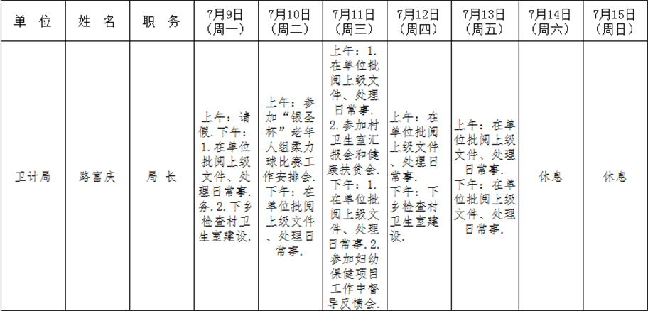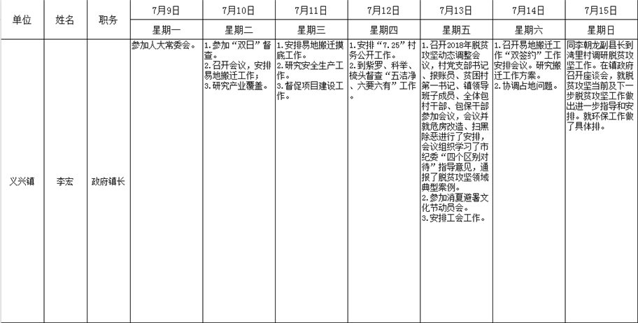 和顺县政府系统领导干部一周工作清单(07月09日—07月15日)