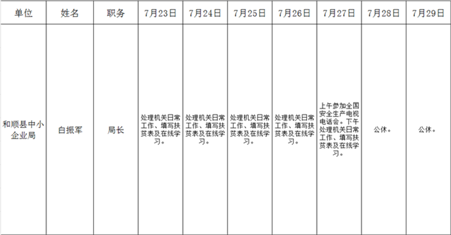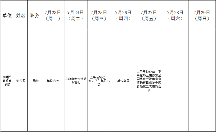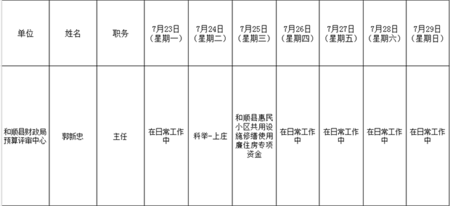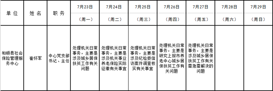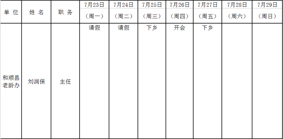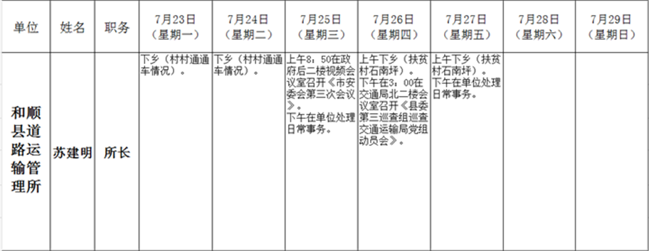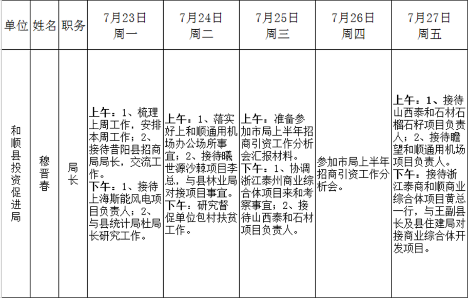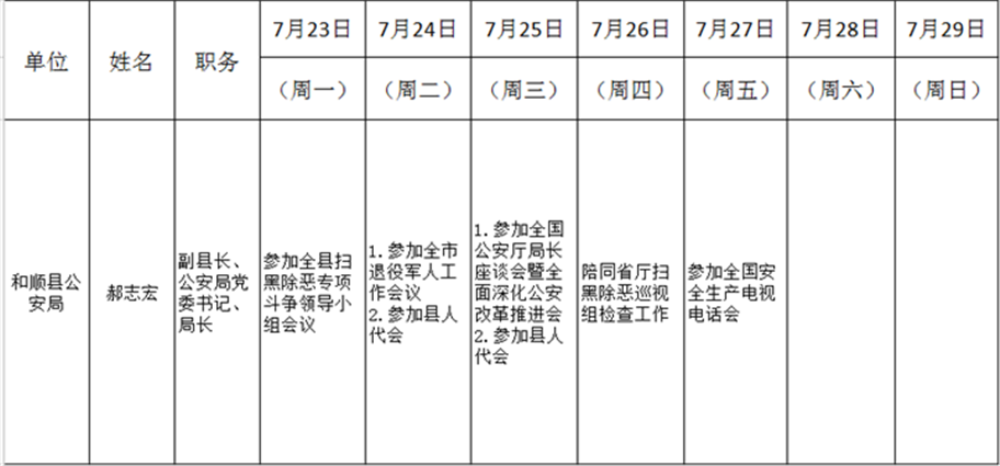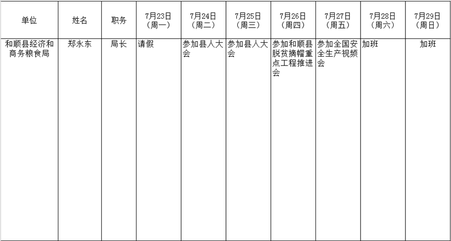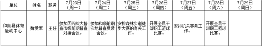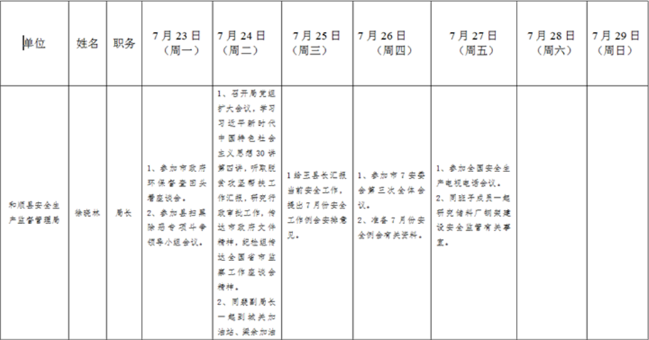 和顺县政府系统领导干部一周工作清单(07月23日—07月29日)