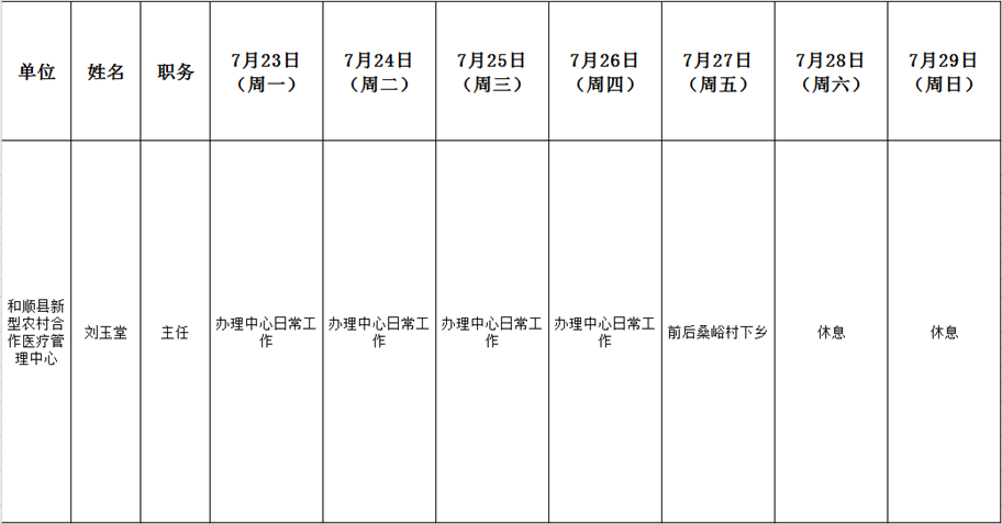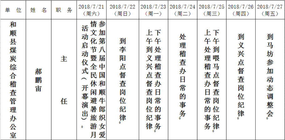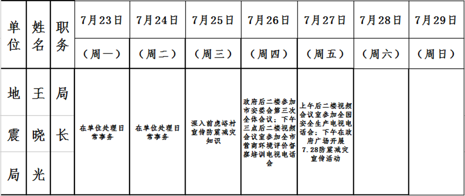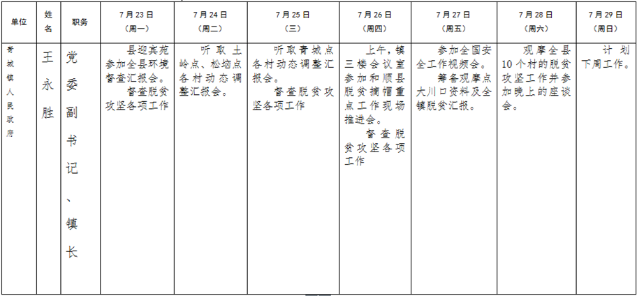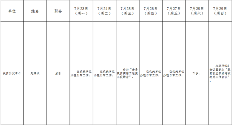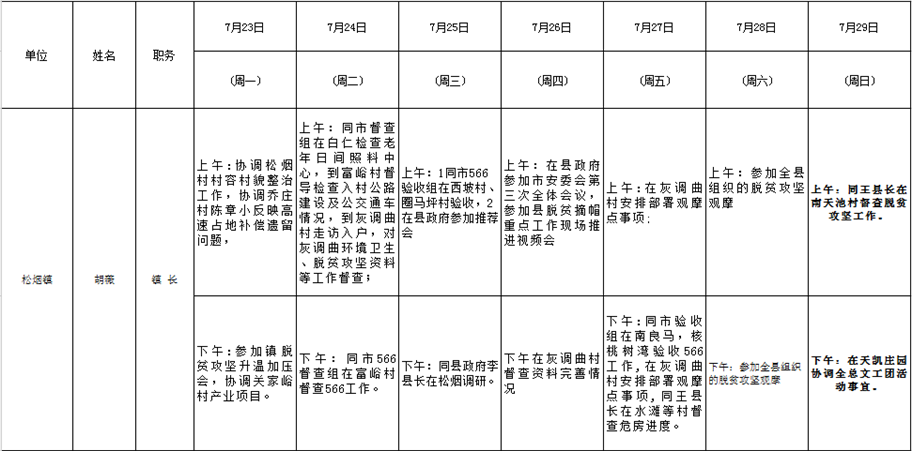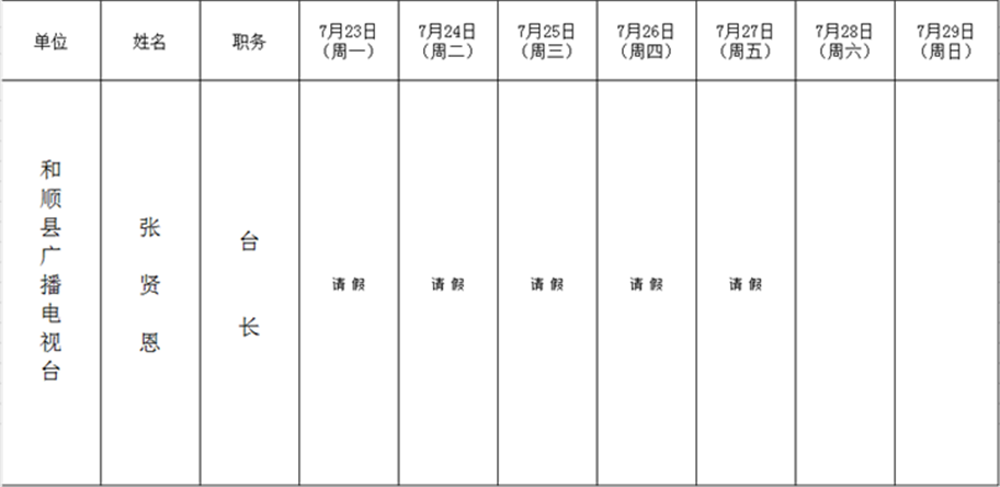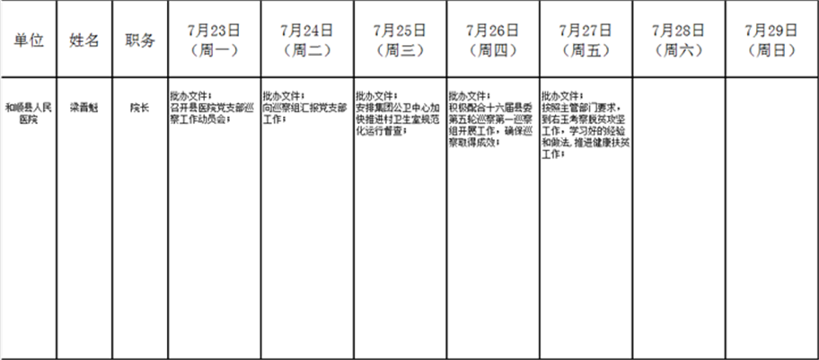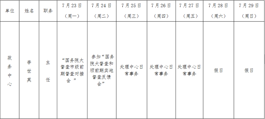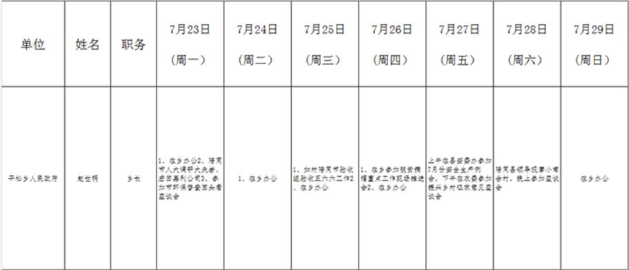 和顺县政府系统领导干部一周工作清单(07月23日—07月29日)
