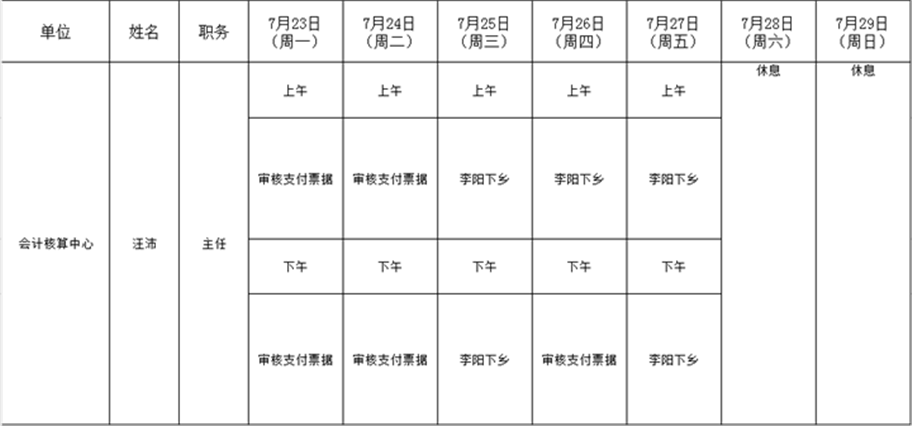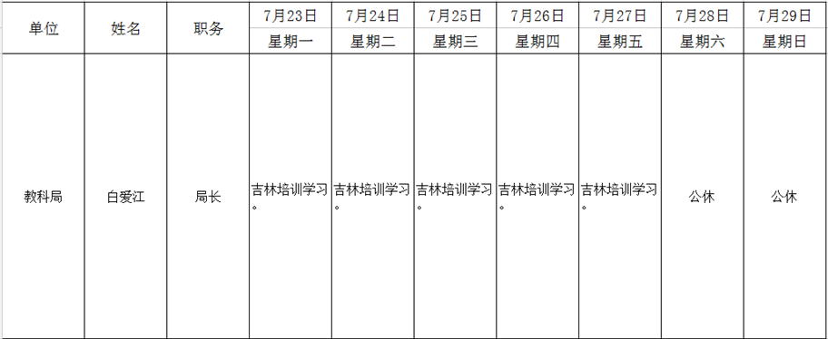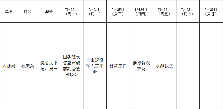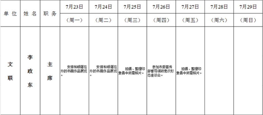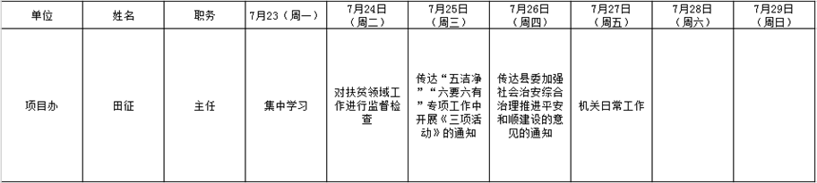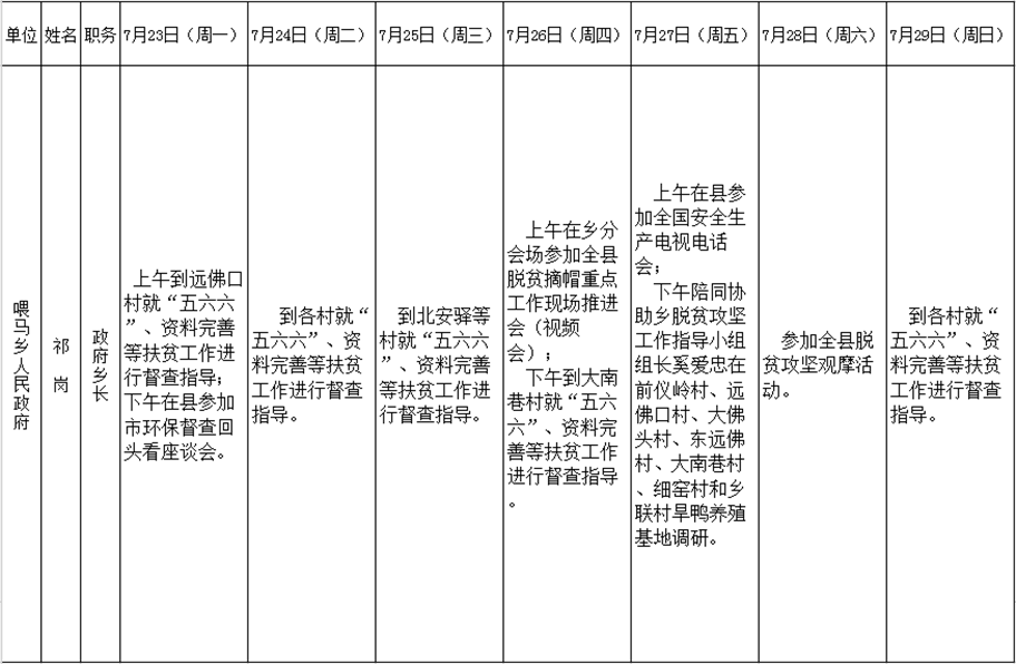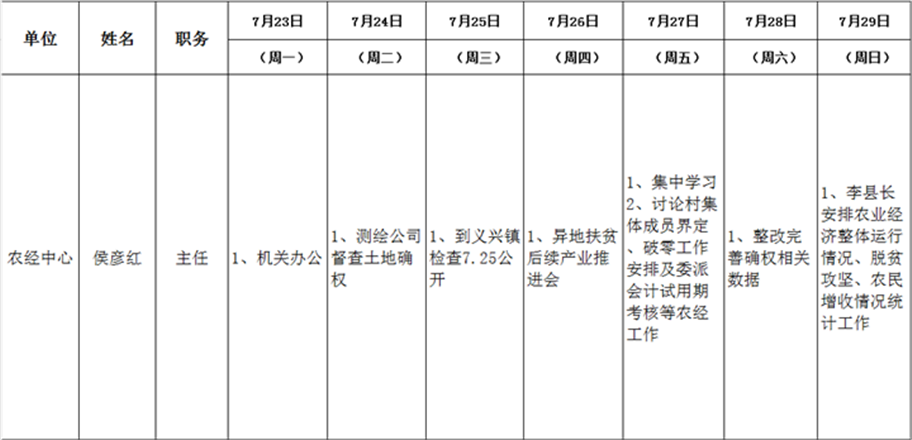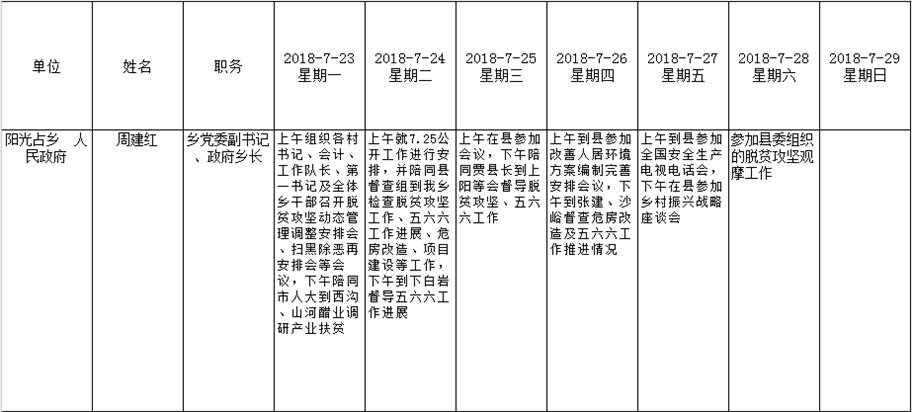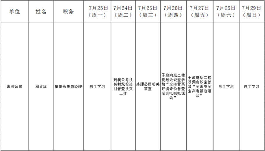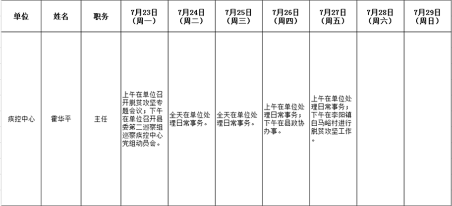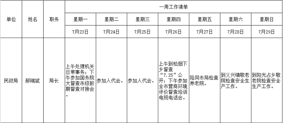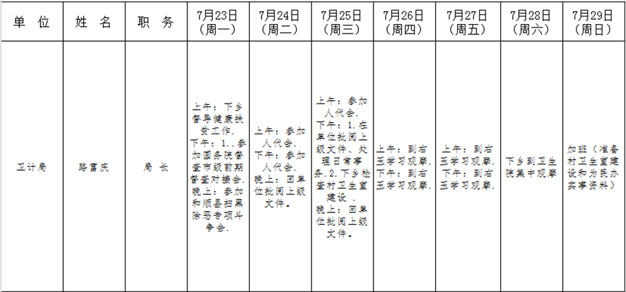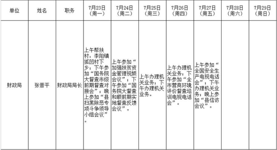 全县领导干部一周工作清单