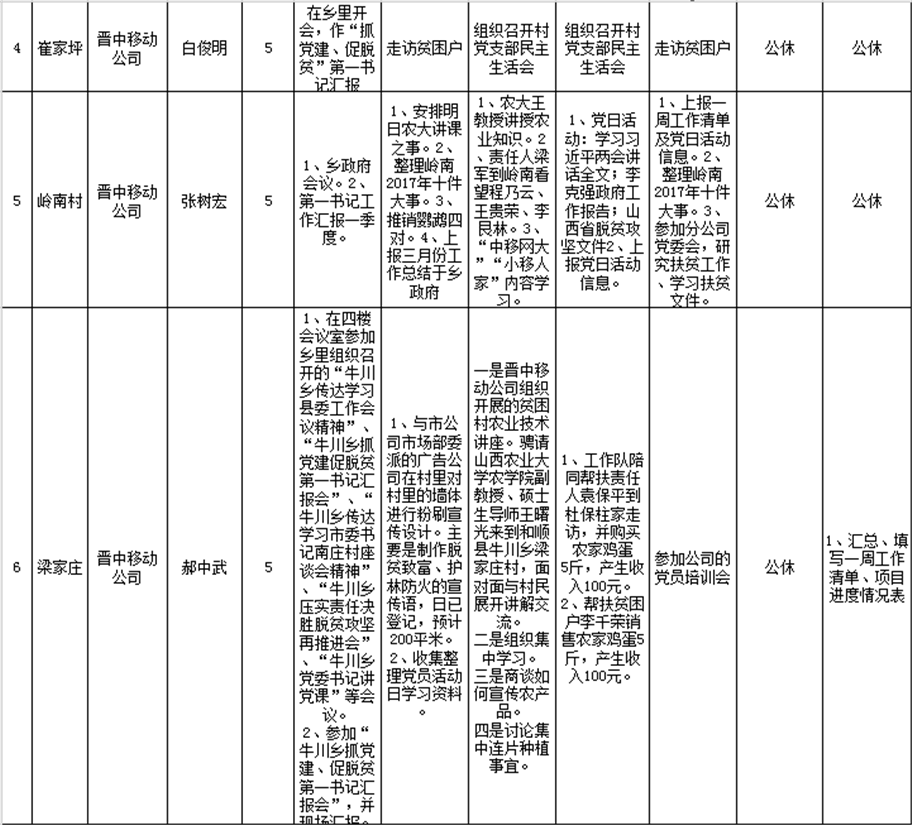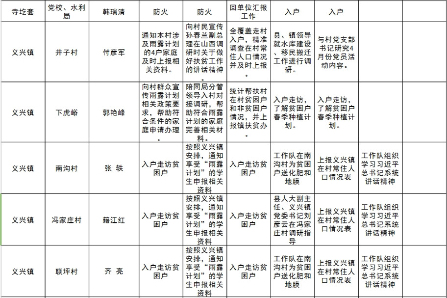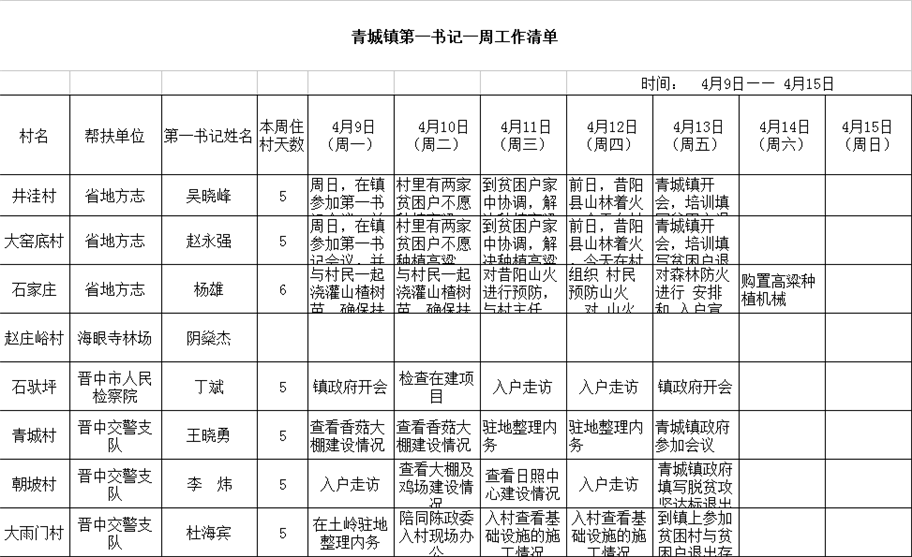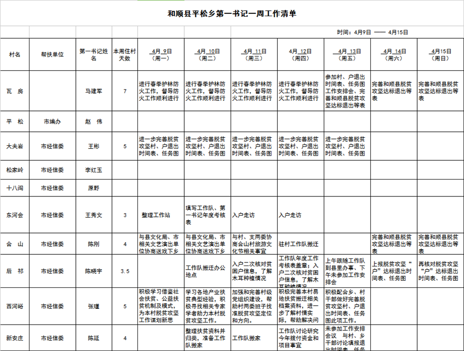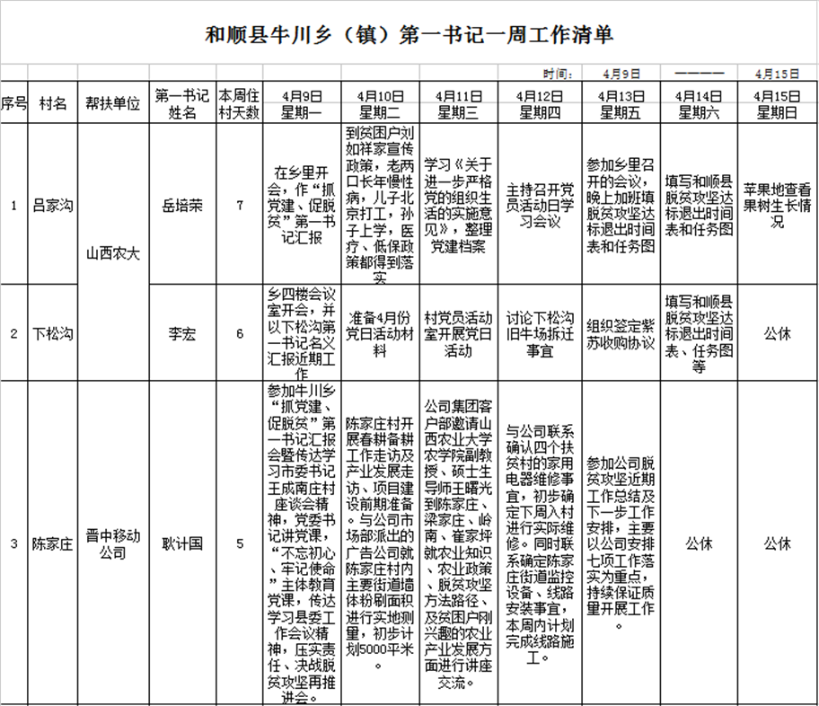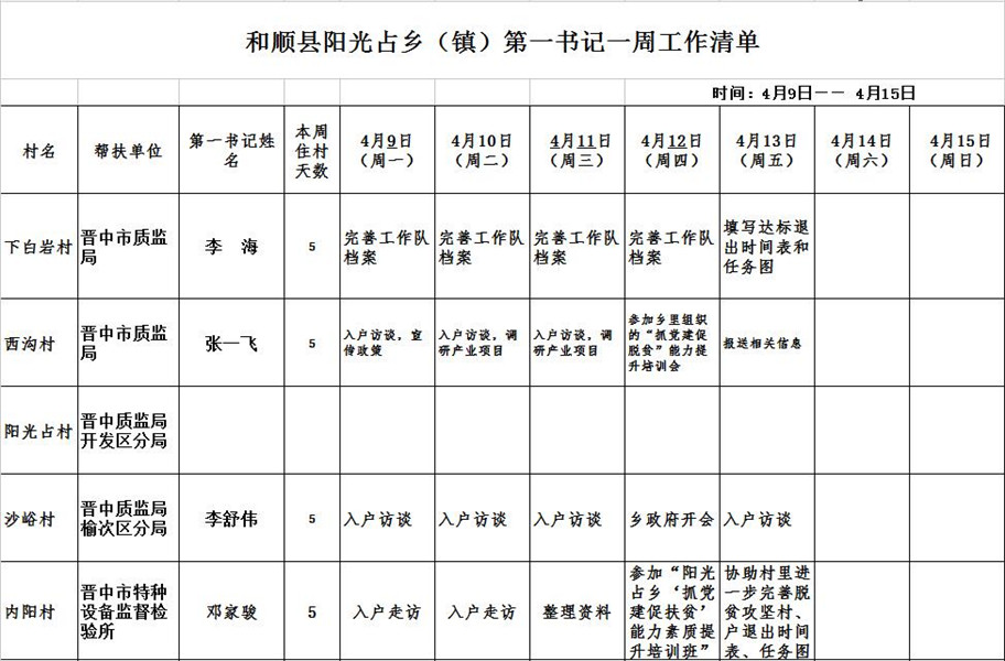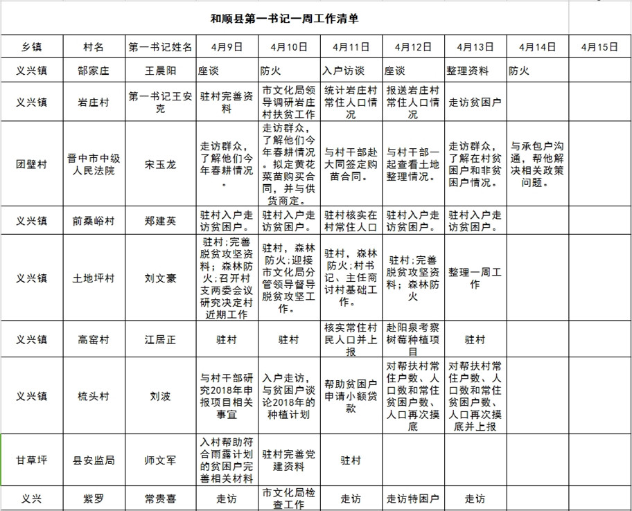 和顺县第一书记一周工作清单(04月09日—04月15日)