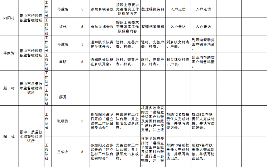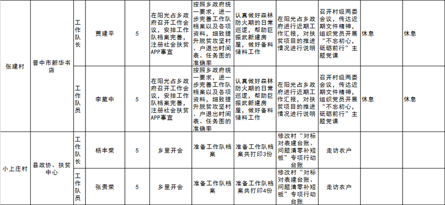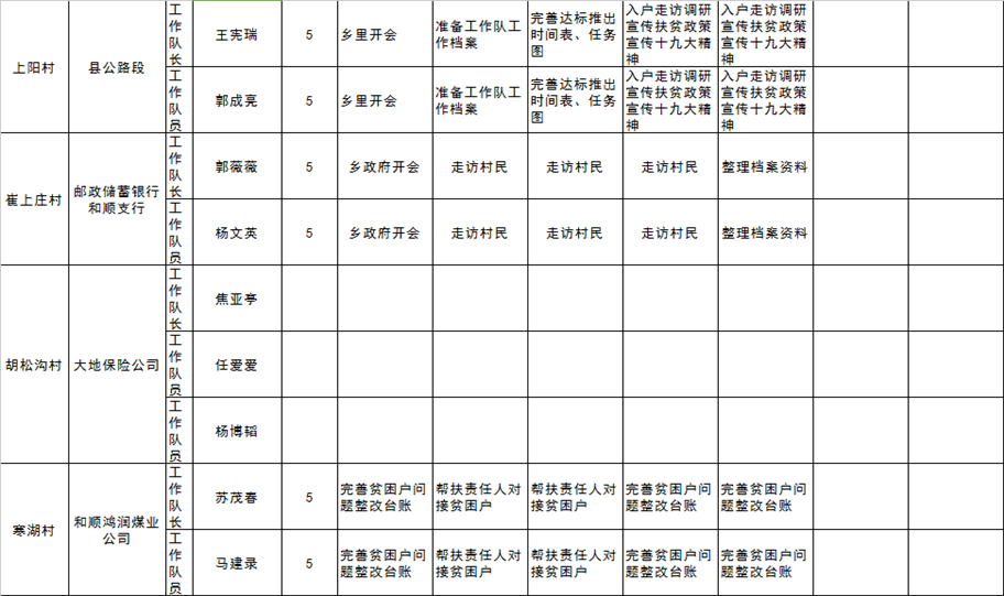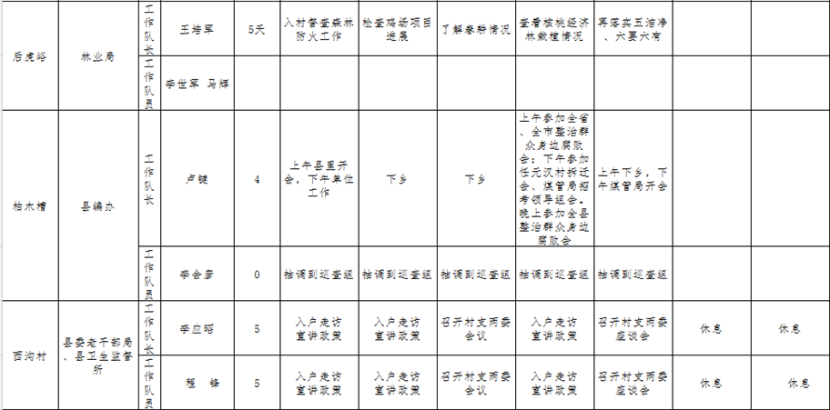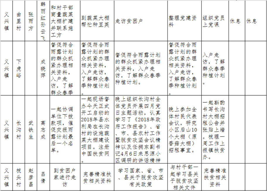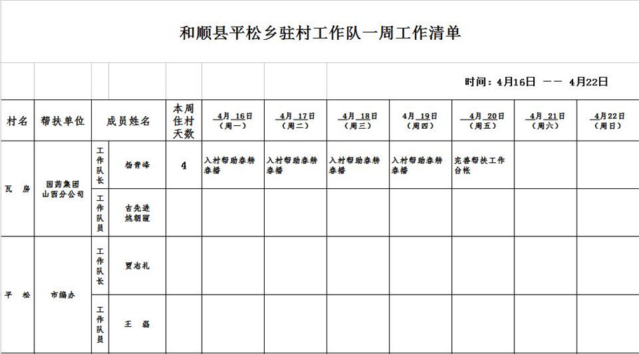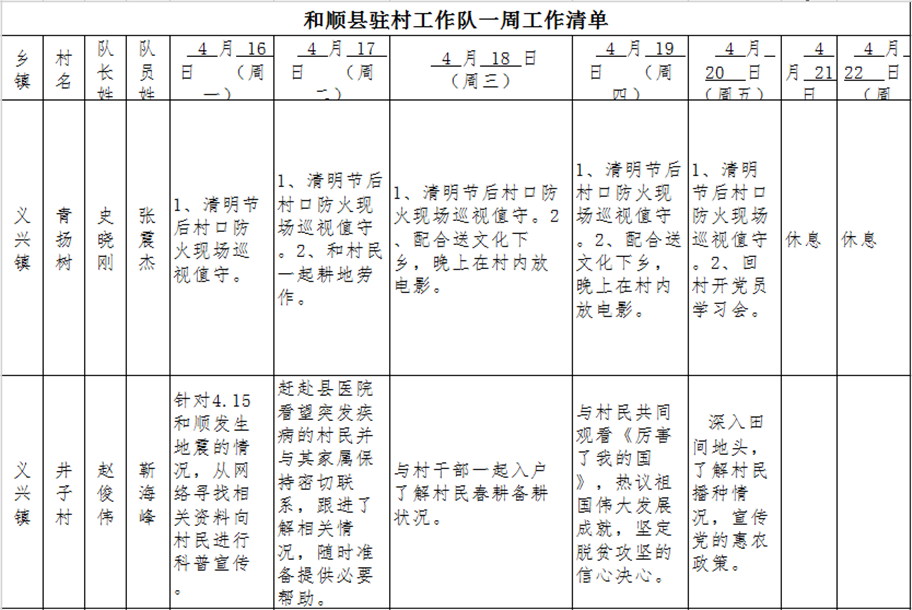 和顺县驻村工作队一周工作清单(04月16日—04月22日)
