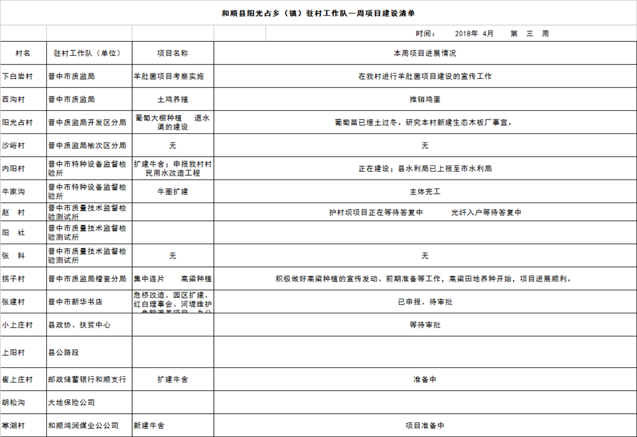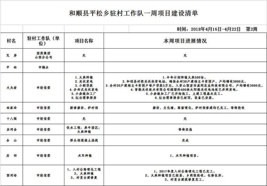 和顺县项目建设清单(04月16日—04月22日)